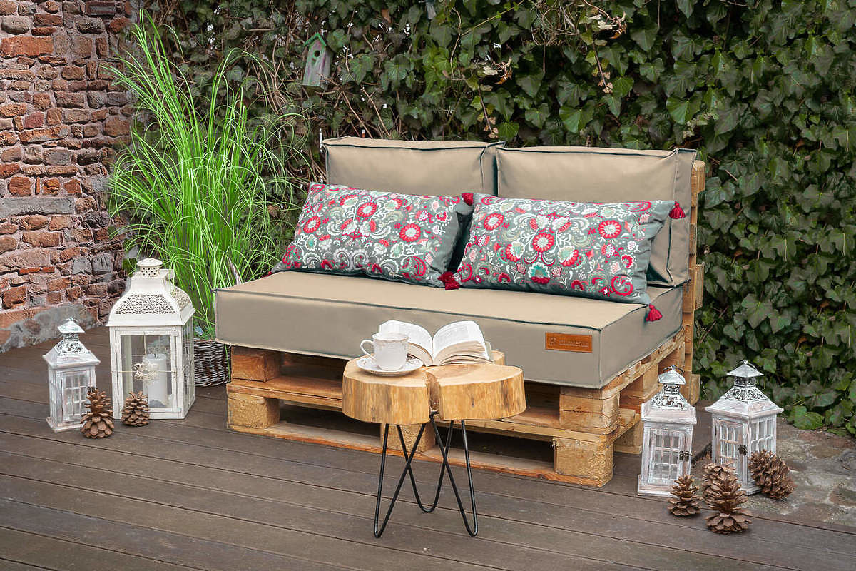 Setul de perne bej pentru mobilier cu paleti este o alegere excelenta pentru a imbunatati cu usurinta așezarea pe terasă, balcon sau în grădină. Pregătit ideal pentru dimensiunile europaleților. Tehnologia specială de cusut asigură rezistența la UV și rezistența la apă a materialului, datorită cărora materialul rămâne puternic și nu se estompează.