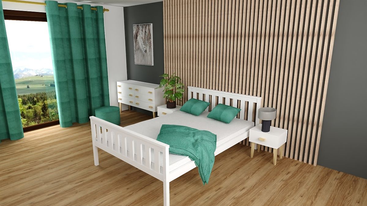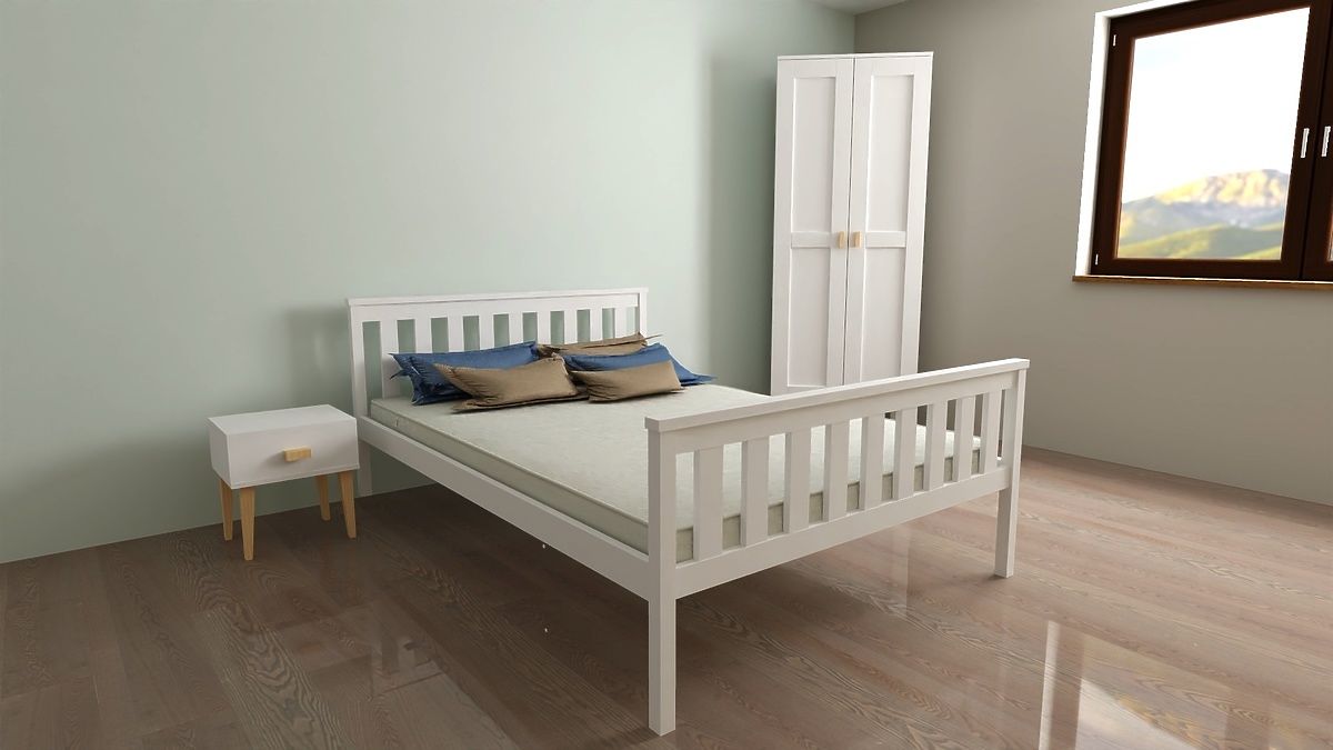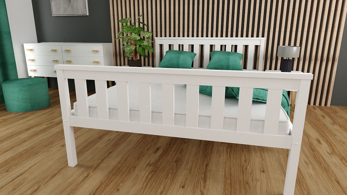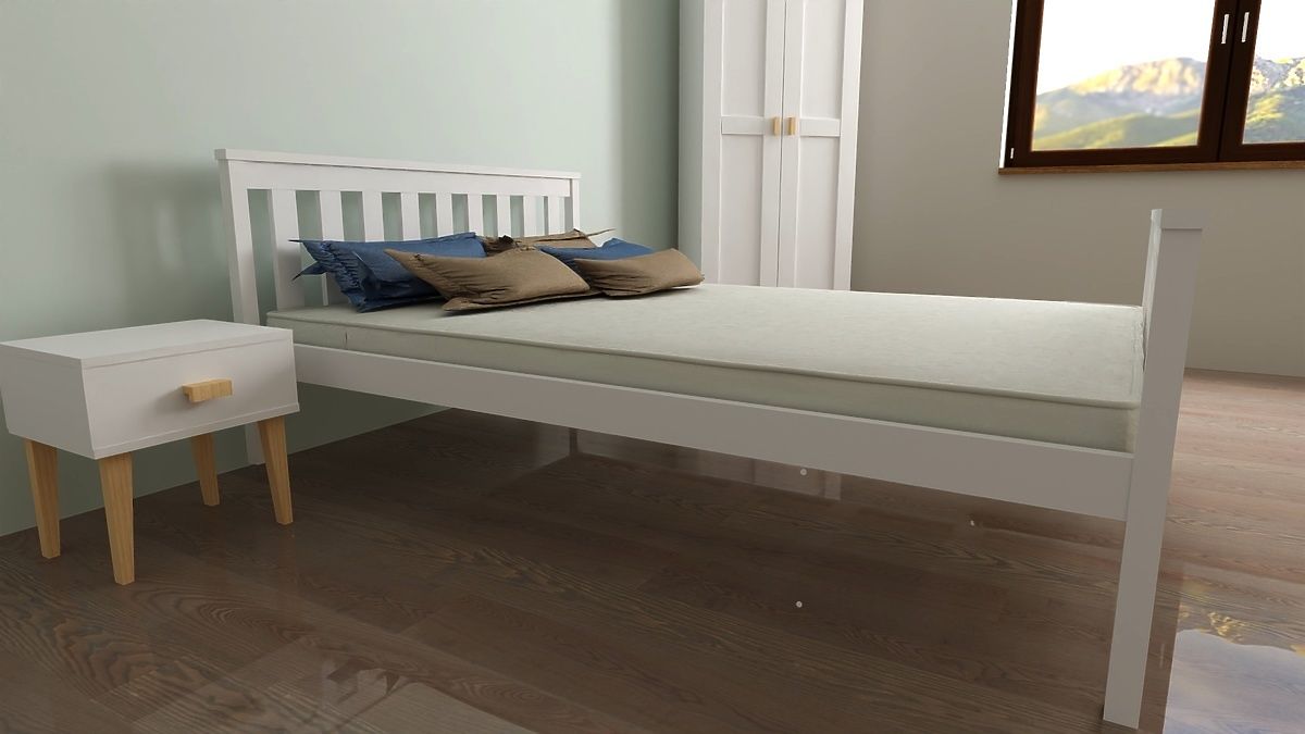 Pat de lemn Aga 200 x 90 cm, alb, elegant și durabil. .. mai mult
