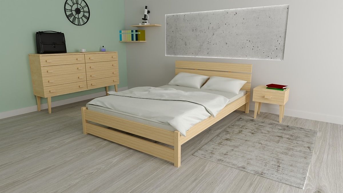 Patul este fabricat din lemn masiv de pin de calitate, ceea ce garantează rezistența, durabilitatea și longevitatea sa.