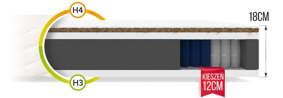 Salteaua FAMILY de 18 cm înălțime vă va oferi un confort minunat în fiecare noapte. Designul său asigură corpului celui care doarme o susținere adecvată, iar mușchii nu sunt încordați. Drept urmare, veți întâmpina diminețile fără dureri de spate, de umeri și de gât.