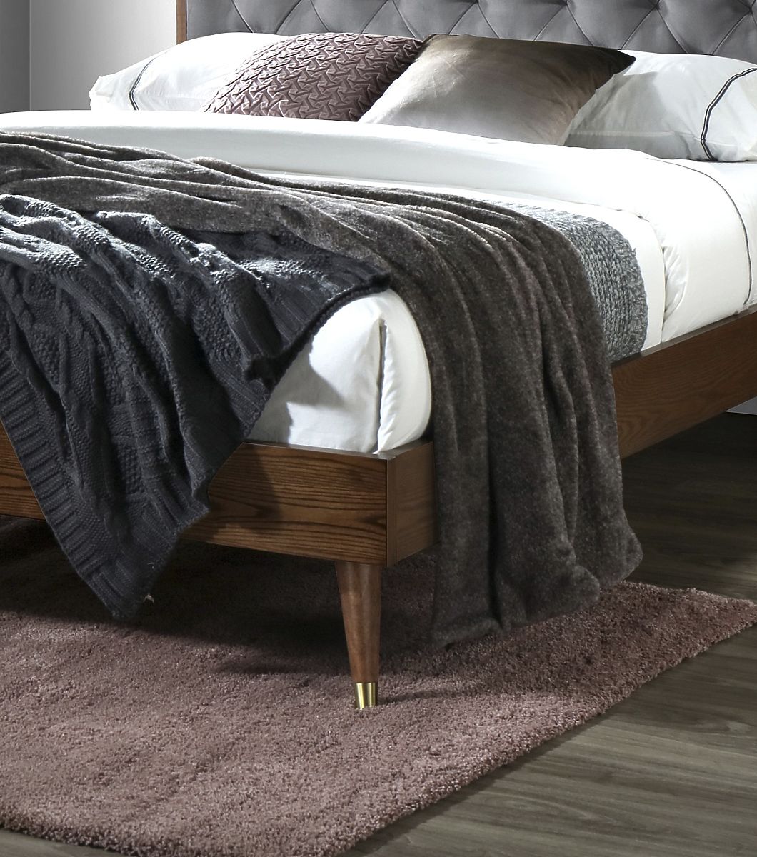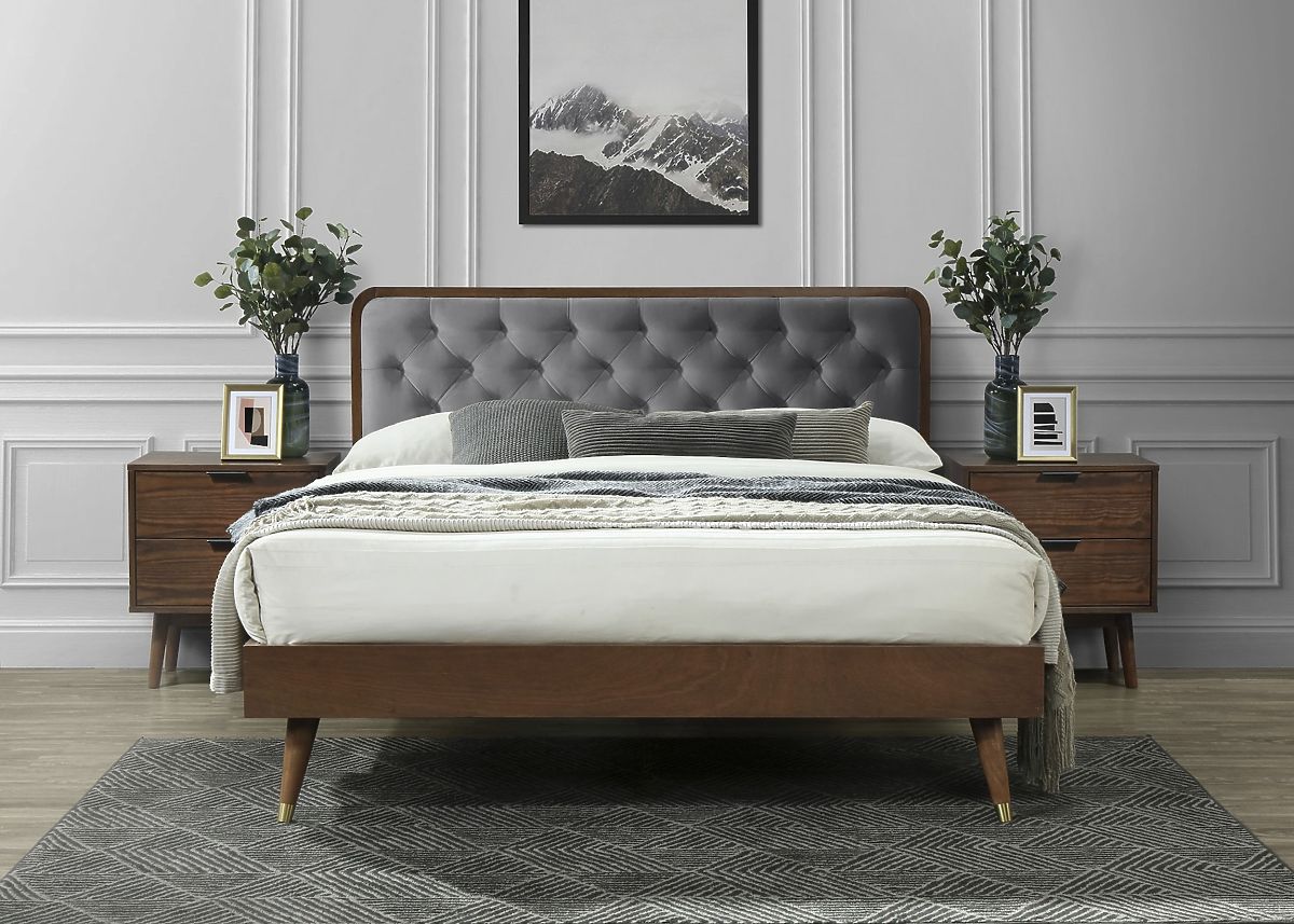 Patul CASSIDY, realizat din materiale de primă clasă , cum ar fi țesătura de catifea pentru tapițerie și construcția din lemn masiv de cauciuc, va oferi nu numai un design frumos, ci și calitate înaltă și durată lungă de viață. Țesătura de catifea pentru tapițerie este elegantă și moale la atingere, sporind astfel confortul general al patului.