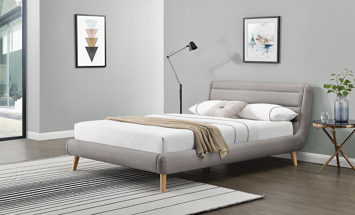 Patul tapitat ELANDA aduce lux simplu dormitorului tau. Cu dimensiunile de 160x200 cm, oferă suficient spațiu pentru ca două persoane să doarmă confortabil. Tăblia joasă oferă patului un aspect modern și de bun gust. Picioarele scurte din lemn ale patului Elanda adaugă o notă naturală și caldă. Lamelele cu șipci oferă suport și confort pentru somn.
