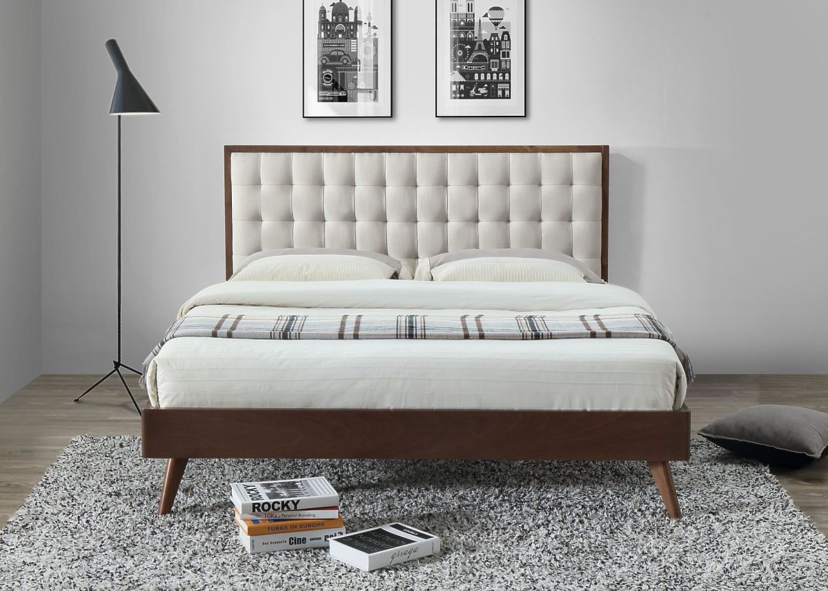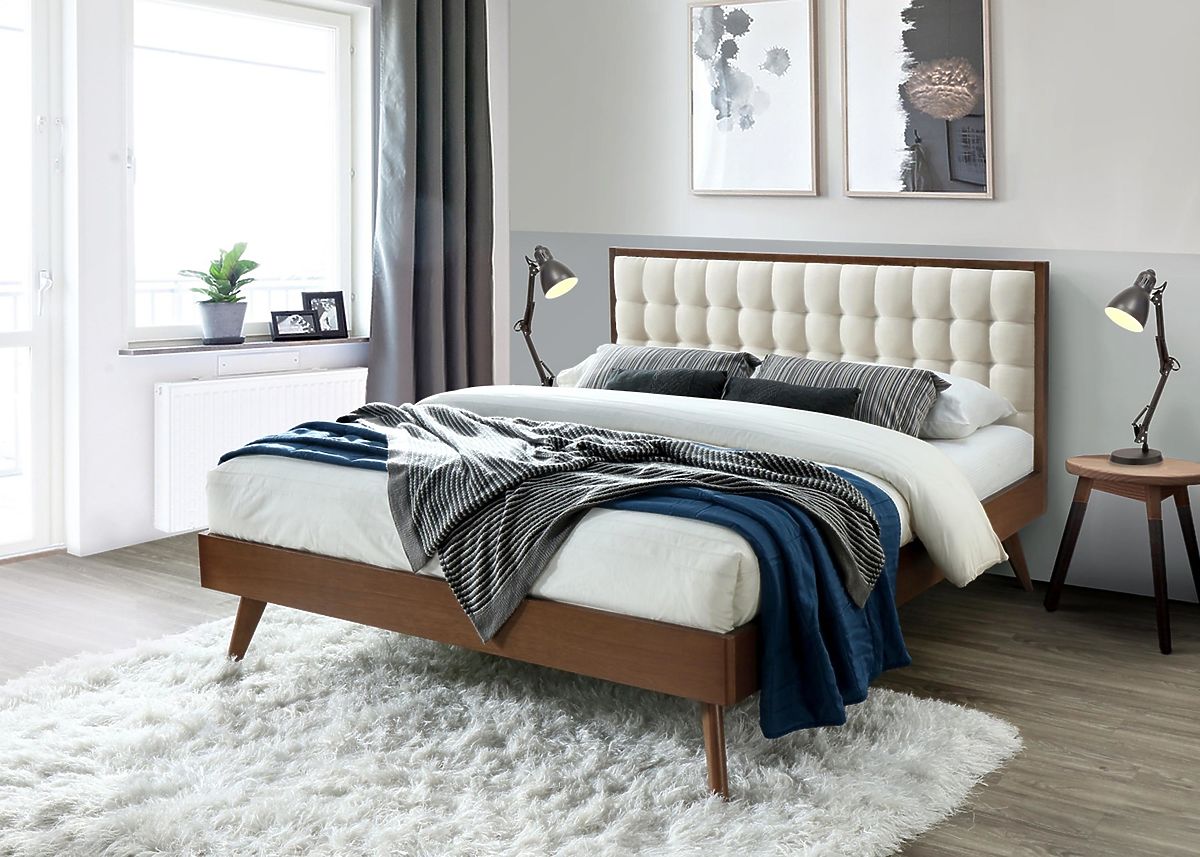 Patul este realizat din lemn de culoare închisă de înaltă calitate, ceea ce conferă patului un aspect natural și cald. Tapițeria la capul patului adaugă confort și eleganță. Această combinație de lemn și tapițerie este întruchiparea perfectă a luxului.