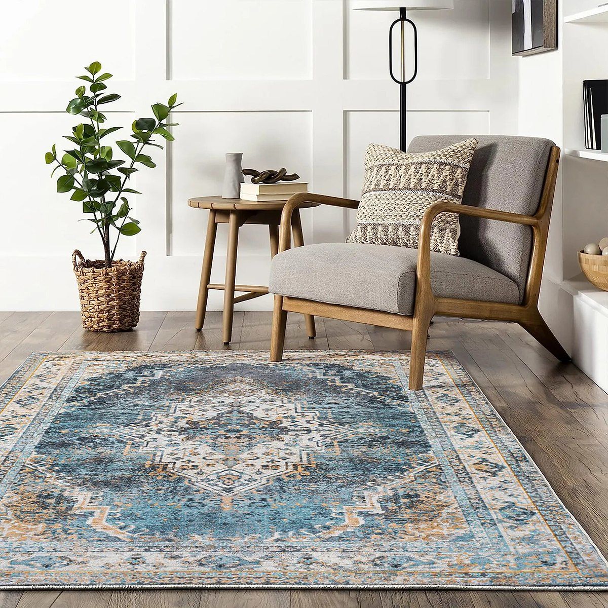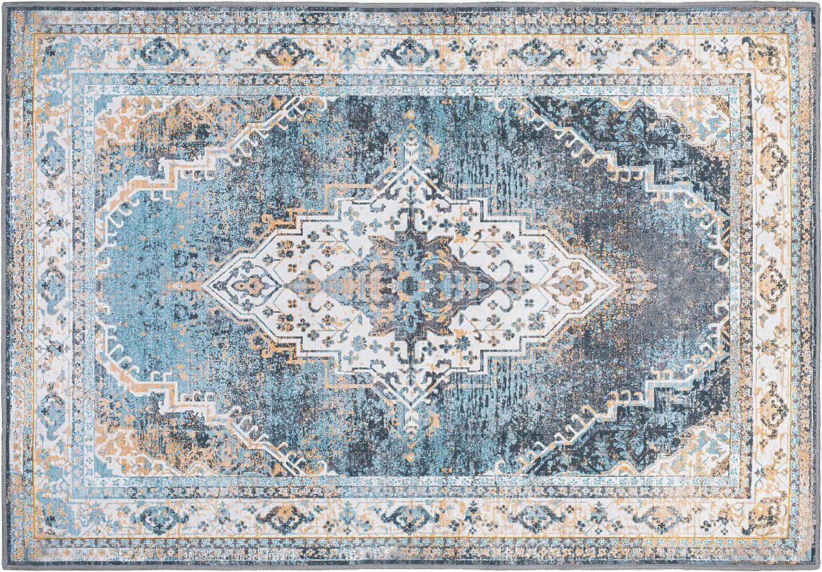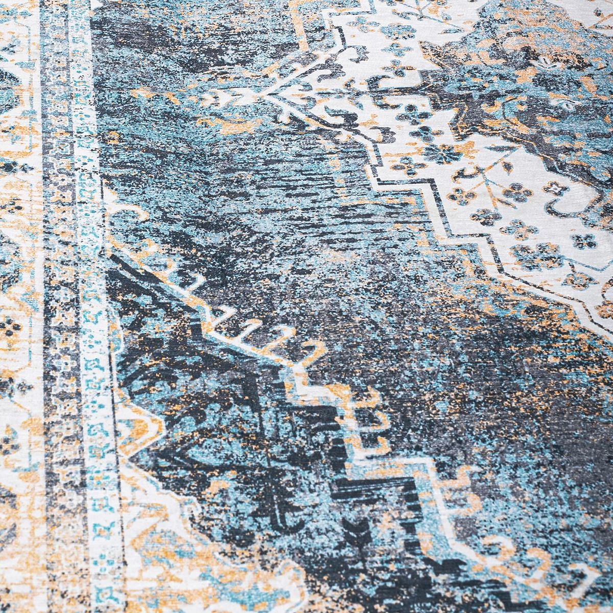 Daca esti in cautarea unui element interesant pentru interiorul tau, acest covor persan este doar pentru tine. Un living sau un dormitor îmbogățit cu acest covor va avea un aspect unic. Covorul este realizat din materiale de înaltă calitate și este asortat cu nuanțe de albastru. Marginile cusute cu grijă îi conferă eleganță și durabilitate. Covorul este antiderapant dedesubt și astfel previne mișcarea necontrolată pe podea.