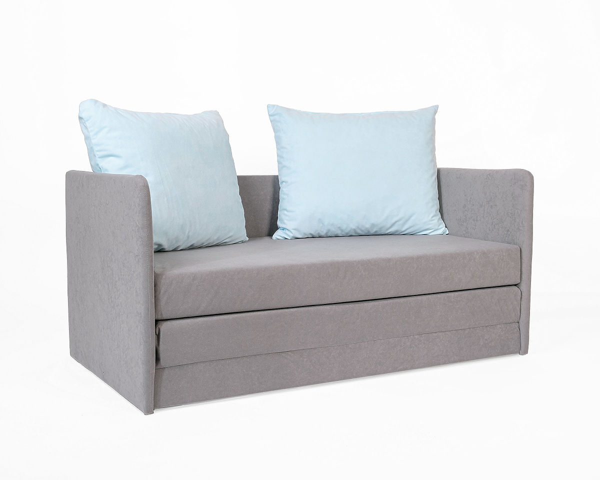 Canapea extensibilă pentru camera copiilor cu perne albastru deschis. .. mai mult