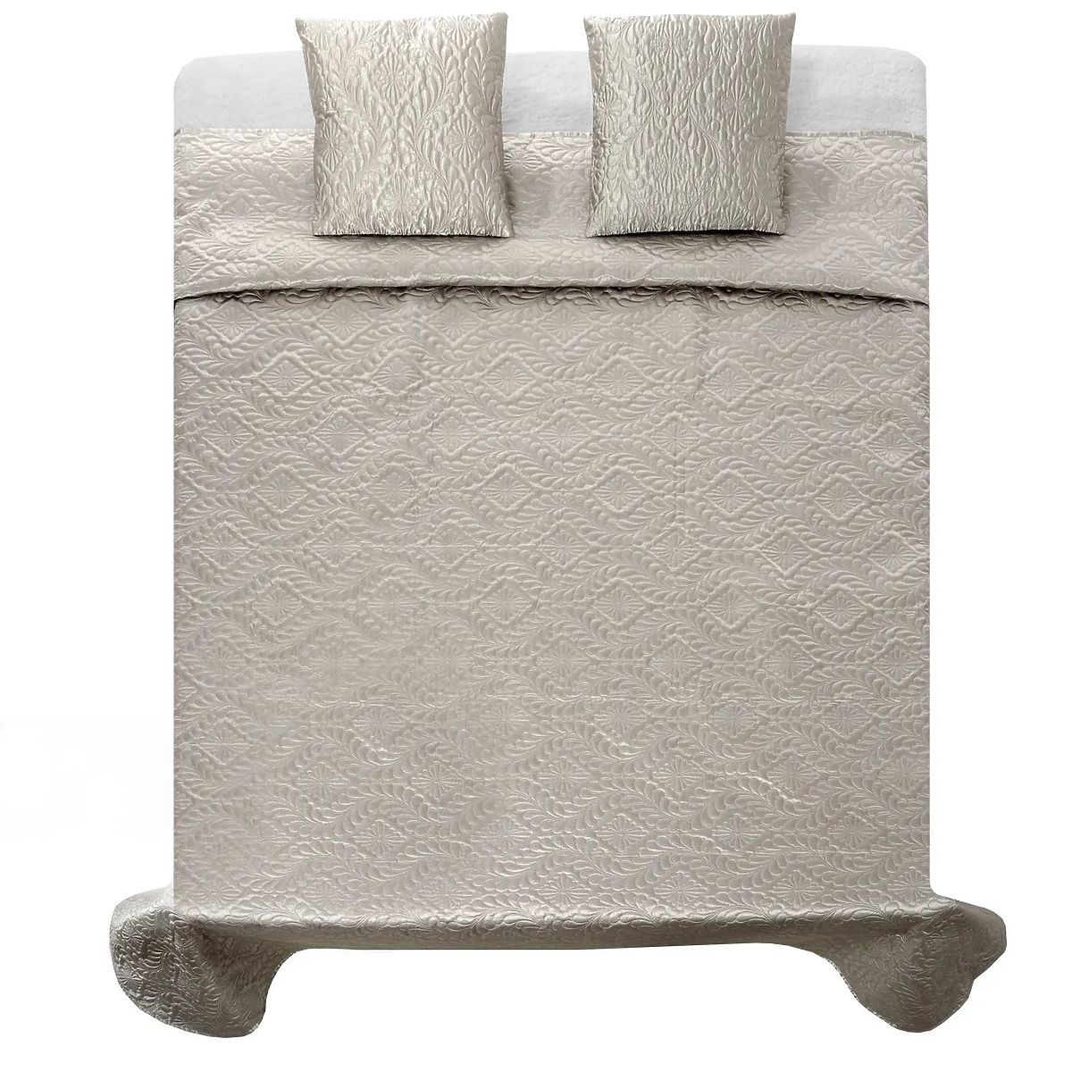 Decorează-ți patul cu o cuvertură de satin elegantă și unică în culoarea gri argintiu. Pachetul include și 2 fețe de pernă. Unicitatea sa se datorează designului rafinat și elegant realizat prin tehnologie cu ultrasunete, care garantează un model perfect reliefat.