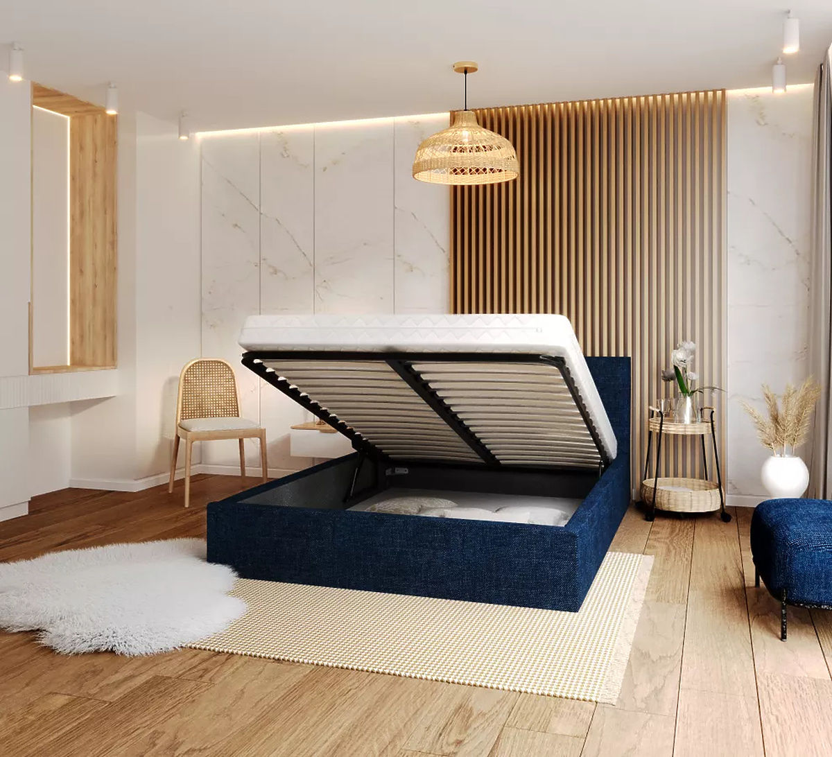 TULSA este o alegere excelentă pentru dormitoarele care trebuie să combine confortul, caracterul practic și durabilitatea. Folosirea unei plăci de mobilier de calitate mărește rezistența patului și îi permite să reziste la sarcini și presiune. Combinația dintre grila de ridicare și pistoanele de ridicare face posibilă crearea unui spațiu de depozitare util sub pat. Această caracteristică este foarte practică, mai ales în dormitoare unde spațiul de depozitare este limitat. Capacitatea de a crea spatiu de depozitare ascuns este apreciata pentru a mentine dormitorul ordonat si bine organizat.