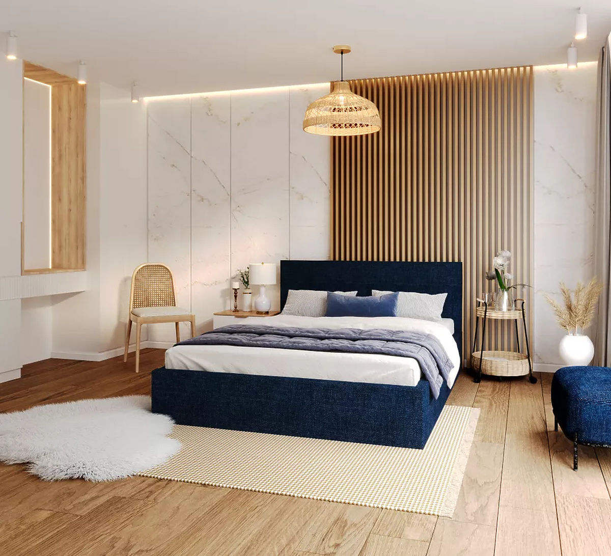 Alegerea patului tapitat TULSA de 160 x 200 cm in albastru inchis este o decizie excelenta pentru camera ta. Acest pat oferă o combinație excelentă de eleganță și confort, perfect pentru cuplurile care caută un loc spațios, dar elegant, pentru a se relaxa. Culoarea albastru închis aduce o atmosferă calmă în cameră. Este elegant și versatil, ceea ce îi permite să se potrivească cu ușurință în diverse stiluri decorative.