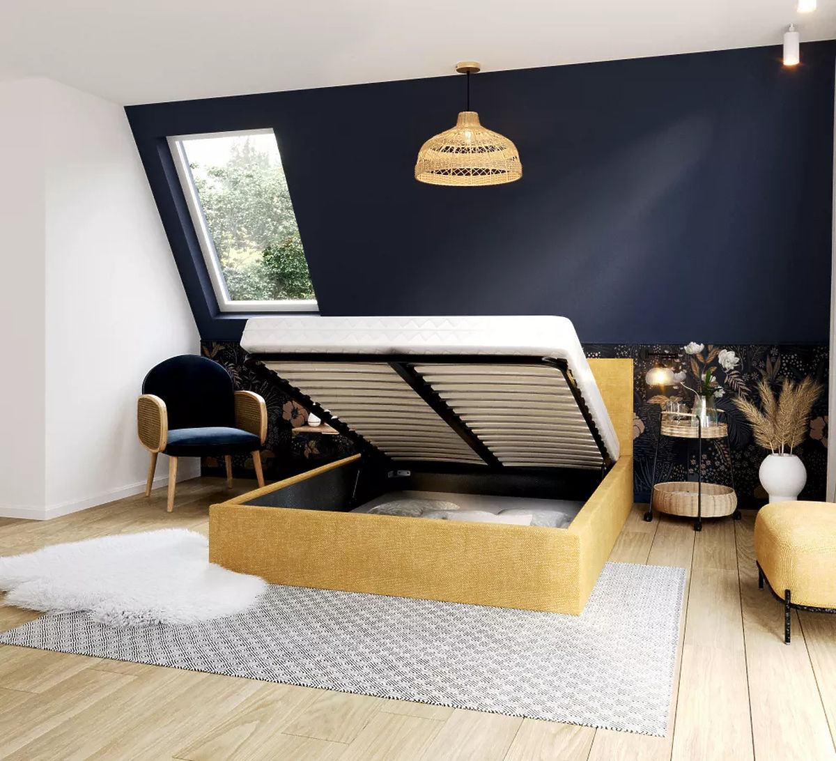 Patul tapițat TULSA de culoare galbenă și care măsoară 120 x 200 cm va deveni un element izbitor care atrage atenția și în același timp creează un spațiu confortabil și plăcut pentru relaxare. Culoarea galbenă este asociată cu bucuria, optimismul și fericirea. Este proaspăt și expresiv, ceea ce poate adăuga energie și dispoziție pozitivă dormitorului tău. Această culoare este o alegere excelentă pentru cei care doresc să aducă o senzație însorită și caldă spațiului lor.
