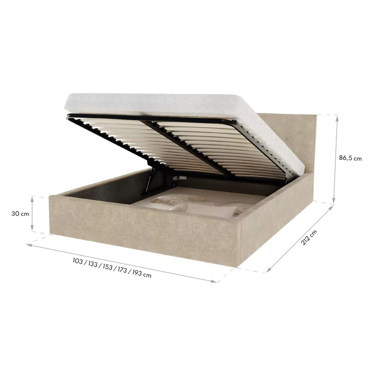 Patul TULSA este echipat cu grila de ridicare si pistoane de ridicare, care fac posibila crearea unui spatiu de depozitare util sub pat. Acest tip de spatiu de depozitare este extrem de practic, mai ales in dormitoare unde economisirea mai mare a spatiului este esentiala. Scândura de mobilier de înaltă calitate din care este realizat patul mărește rezistența patului și îi permite să reziste la diferite sarcini și presiuni.