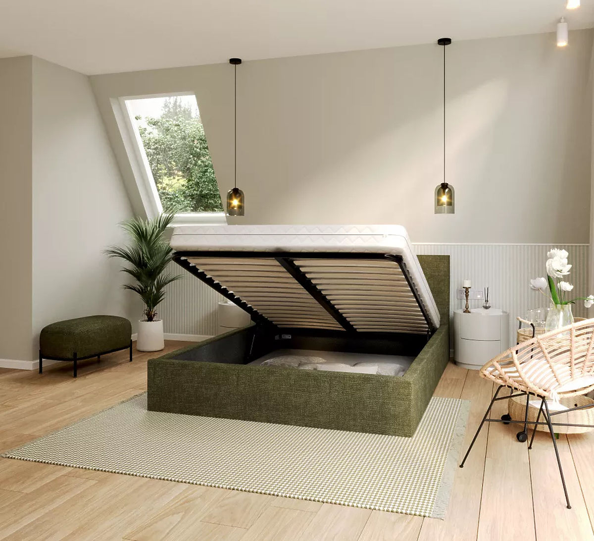 Utilizarea plăcilor de mobilier de înaltă calitate în construcția patului crește rezistența și durabilitatea acestuia. Aceasta înseamnă că patul poate rezista la stres și presiune, ceea ce este cheia siguranței și confortului în timpul somnului. Combinația dintre o grilă de ridicare și pistoane de ridicare pentru a crea spațiu util de depozitare sub pat este o soluție excelentă pentru dormitoarele cu spațiu de depozitare limitat.