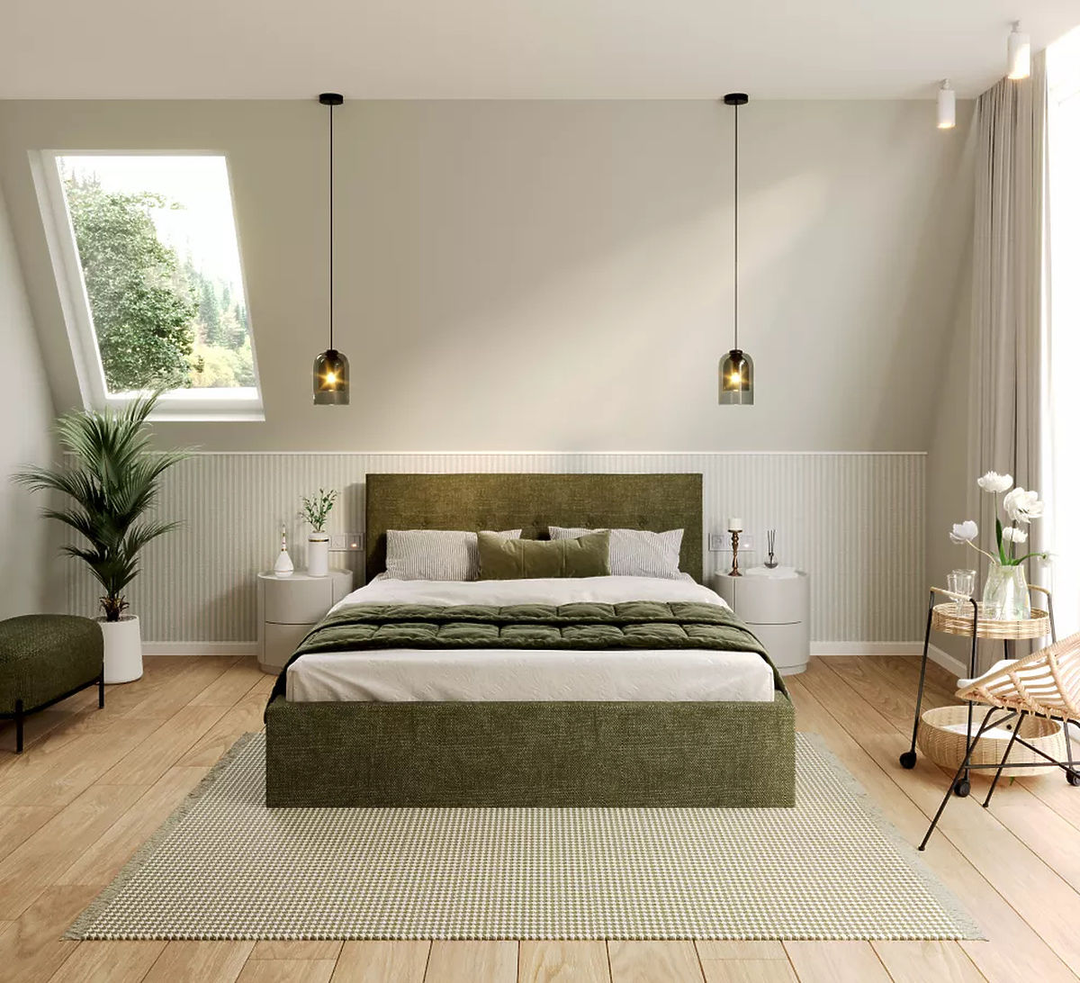Patul TULSA de culoare verde oliv și dimensiunile 180 x 200 cm oferă cu siguranță o combinație excelentă de eleganță și confort pentru dormitorul tău. Dimensiunea patului oferă suficient spațiu pentru a vă deplasa liber în timpul nopții, ceea ce este cheia pentru un somn de calitate, în special pentru cupluri. Spațiul suficient permite ambilor parteneri să doarmă confortabil și fără restricții. Culoarea verde măsline aduce liniște și armonie în cameră, ceea ce este o modalitate excelentă de a crea un mediu relaxant în dormitorul tău.