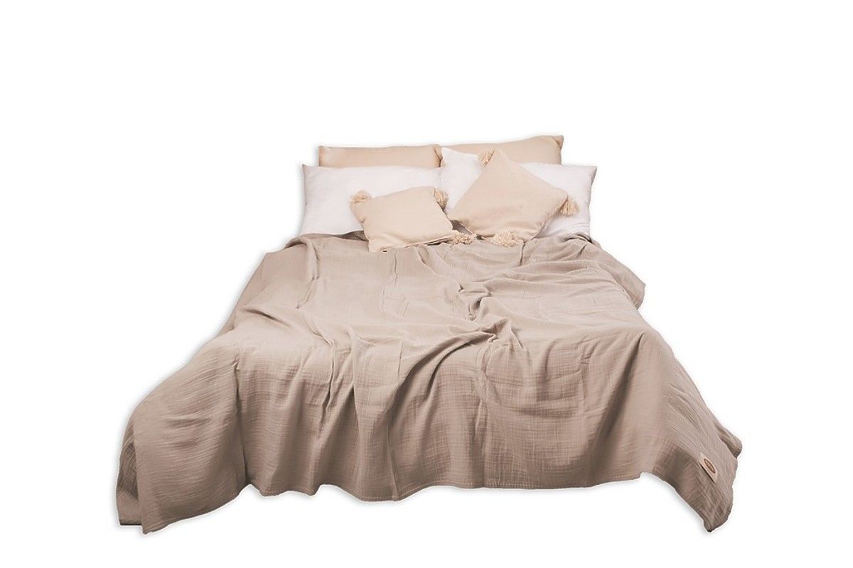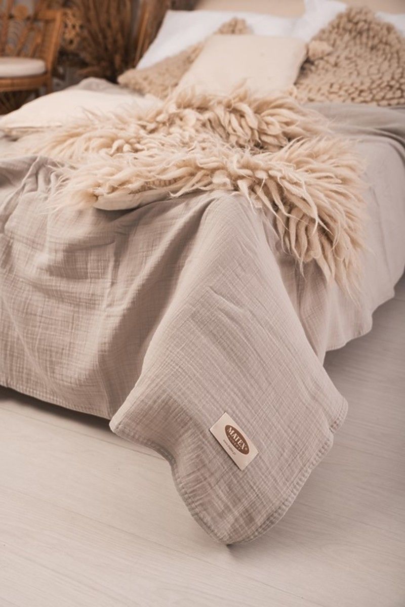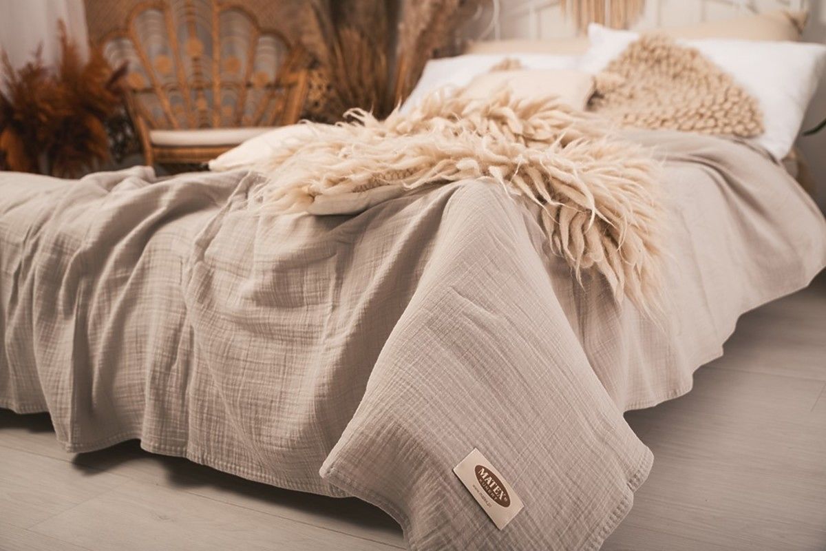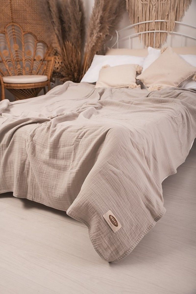 Cuvertura de muselina 240x210 cm. Este usoara, placuta si moale la atingere. Are o respirabilitate excelentă și capacitatea de a regla temperatura. Nu necesită călcare, are întotdeauna un efect estetic și oferă dormitorului un aspect confortabil.