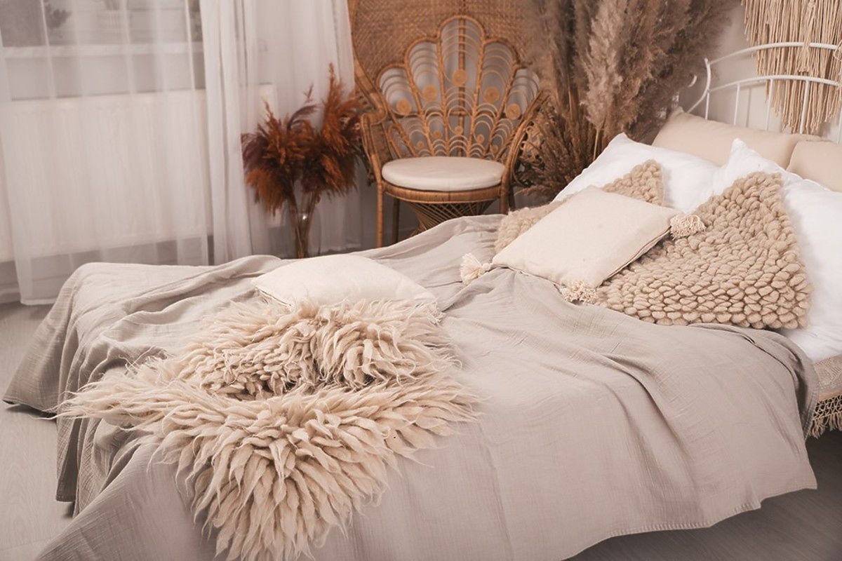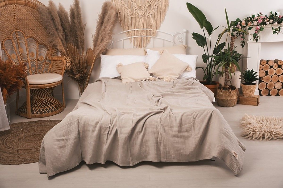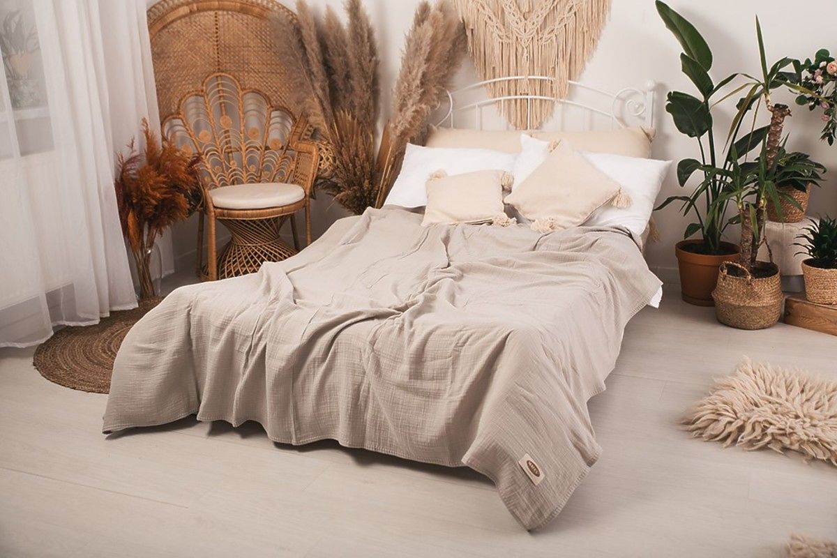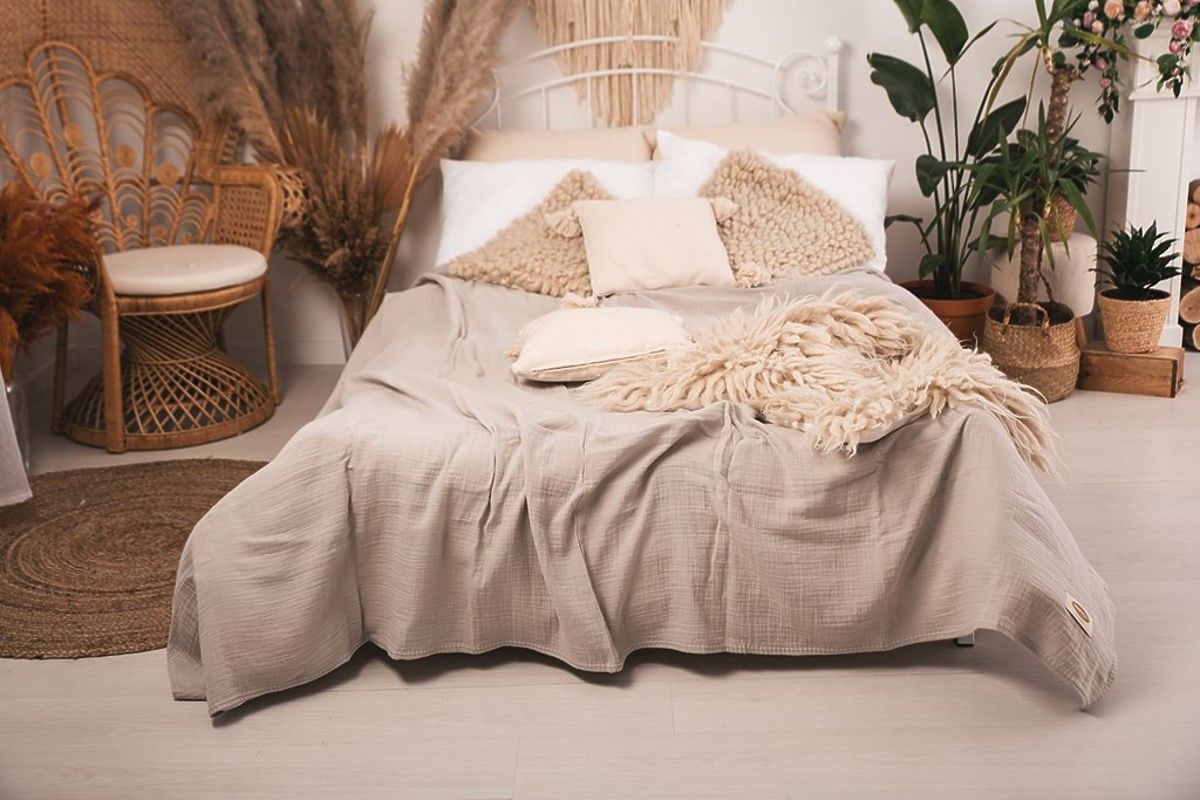 Cuvertura de muselina 240x210 cm. Este usoara, placuta si moale la atingere. Are o respirabilitate excelentă și capacitatea de a regla temperatura. Nu necesită călcare, are întotdeauna un efect estetic și oferă dormitorului un aspect confortabil.
