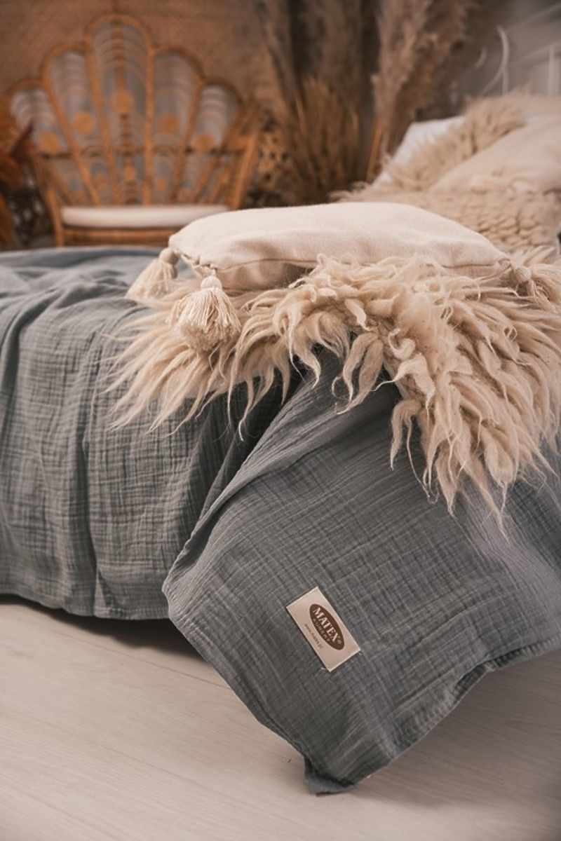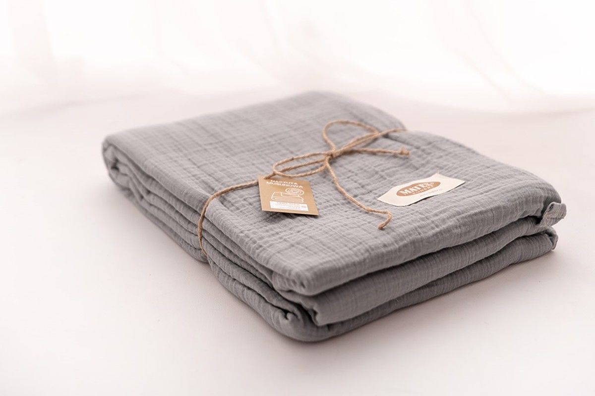 Cuvertura de muselina 240x210 cm. Este usoara, placuta si moale la atingere. Are o respirabilitate excelentă și capacitatea de a regla temperatura. Nu necesită călcare, are întotdeauna un efect estetic și oferă dormitorului un aspect confortabil.