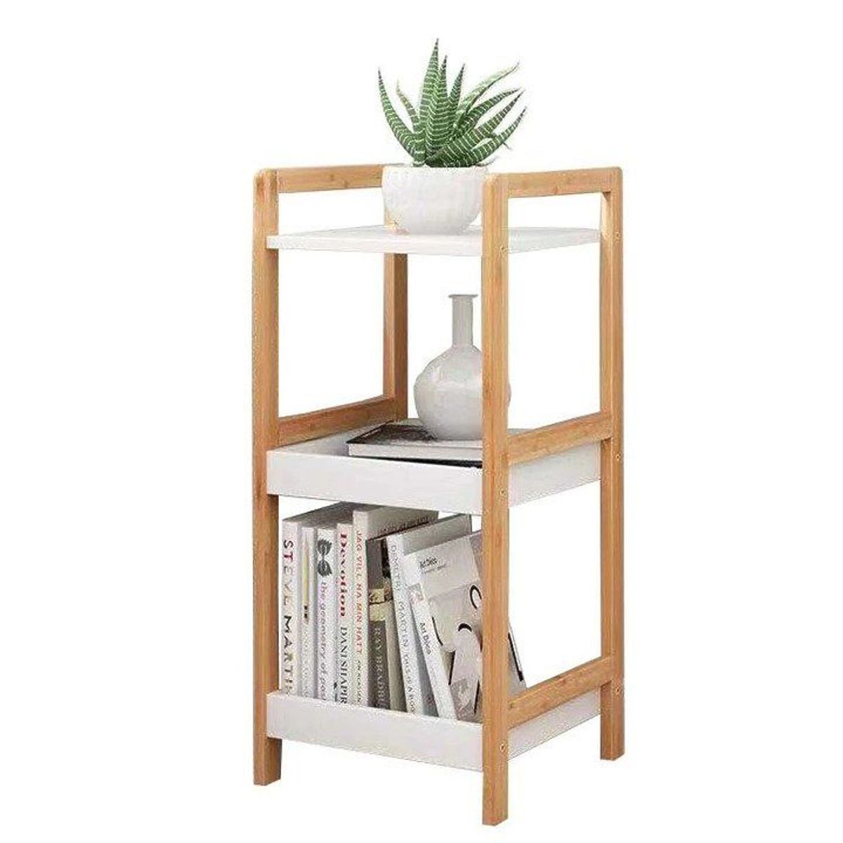 Mic raft de cărți din lemn de bambus cu rafturi albe. .. mai mult