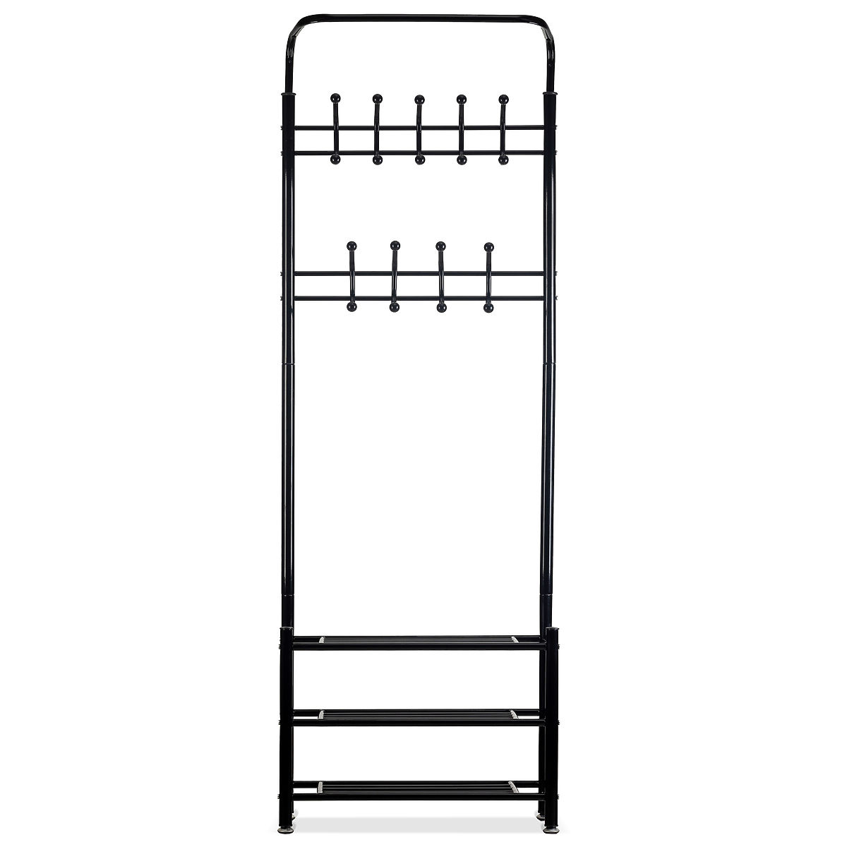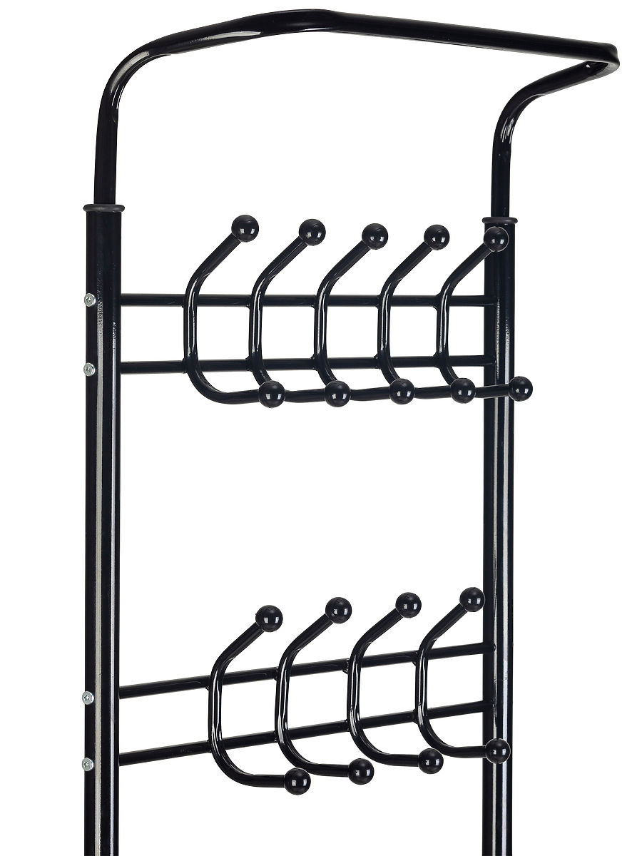 In partea superioara sunt doua randuri cu 18 umerase , datorita numarului mare de carlige sunt perfecte pentru vestiarele de acasa, birouri sau sali de asteptare.