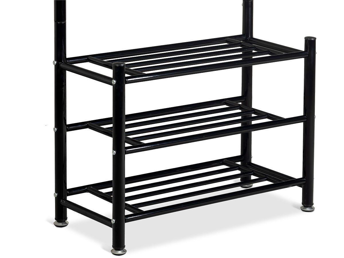 Suportul din partea de jos are trei rafturi funcționale unde poți depozita piese mai mici de îmbrăcăminte, genți și chiar pantofi.