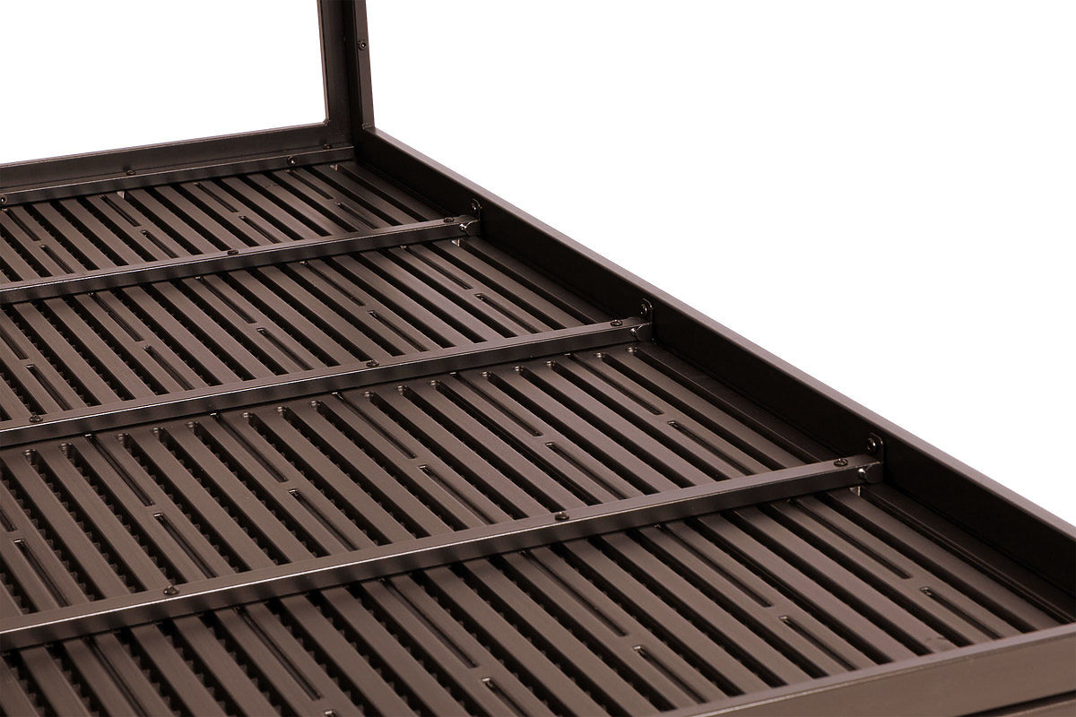 Masa de gradina BASIC este realizata din profile metalice, datorita carora intreaga structura este stabila si nu se deformeaza precum mesele de plastic. Blatul mesei are profile transversale suplimentare dedesubt, care îi conferă rigiditate și asigură o rezistență adecvată. Suprafața blatului este acoperită cu un model care imită textura lemnului.