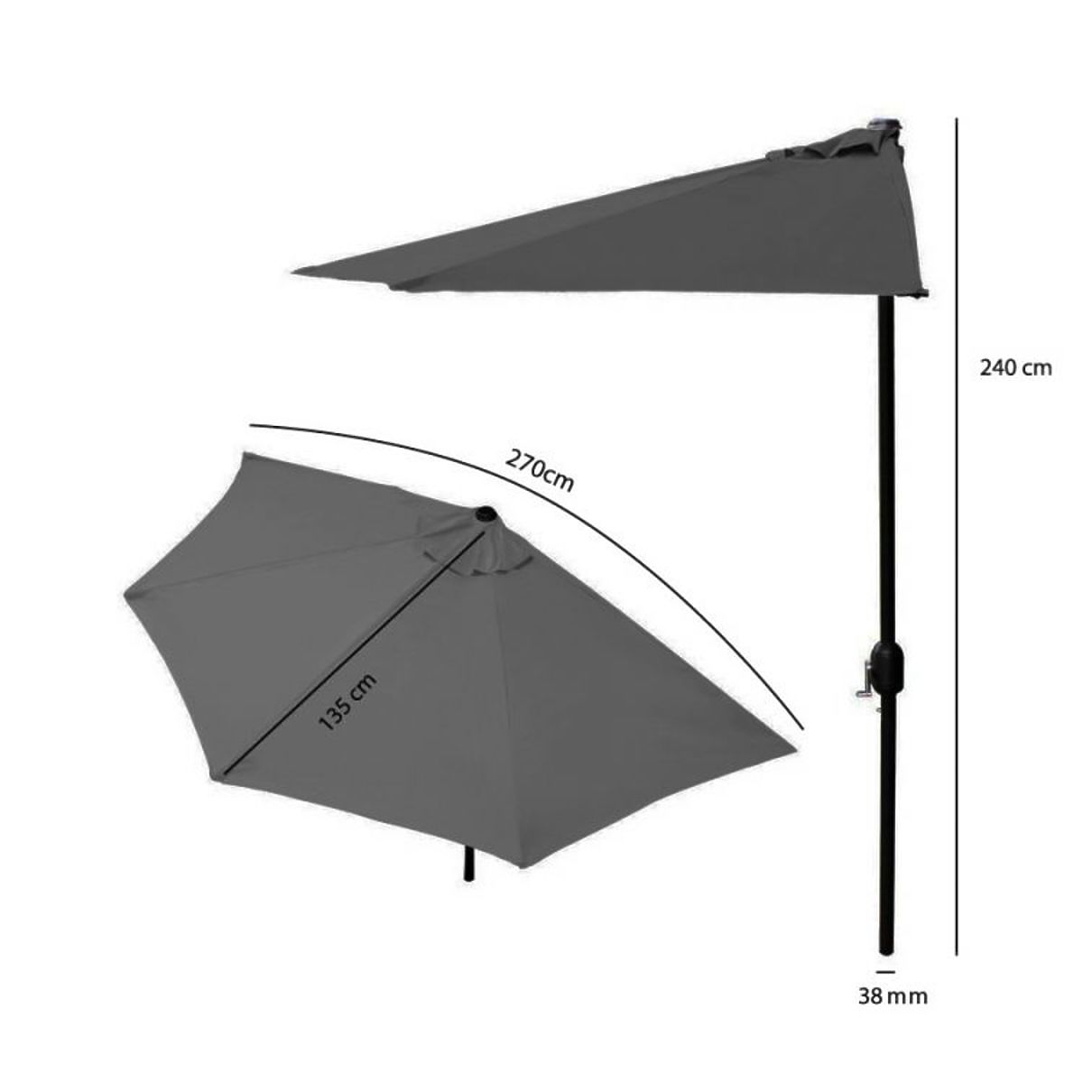 Dacă doriți să creați un adăpost umbrit într-un spațiu mic, umbrela noastră de soare funcțională va fi soluția perfectă . Datorită baldachinului semicircular, îl poți așeza direct pe perete, făcând umbrela perfectă pentru balcoane sau terase înguste.