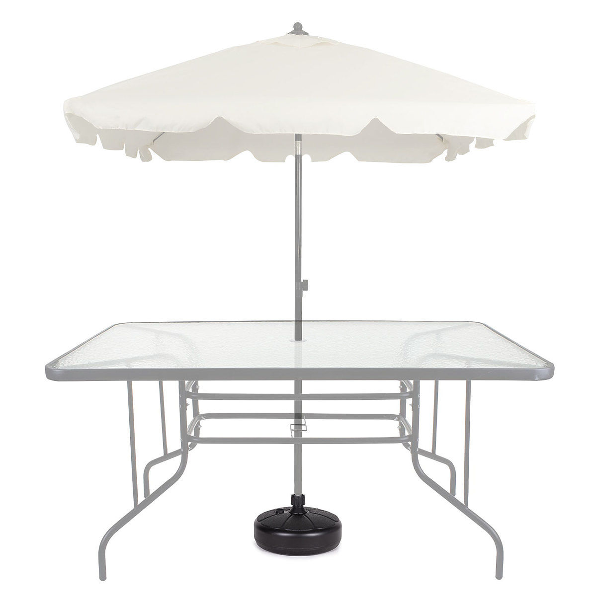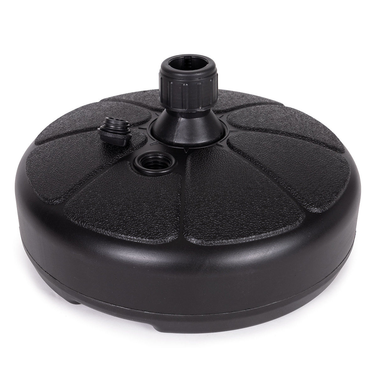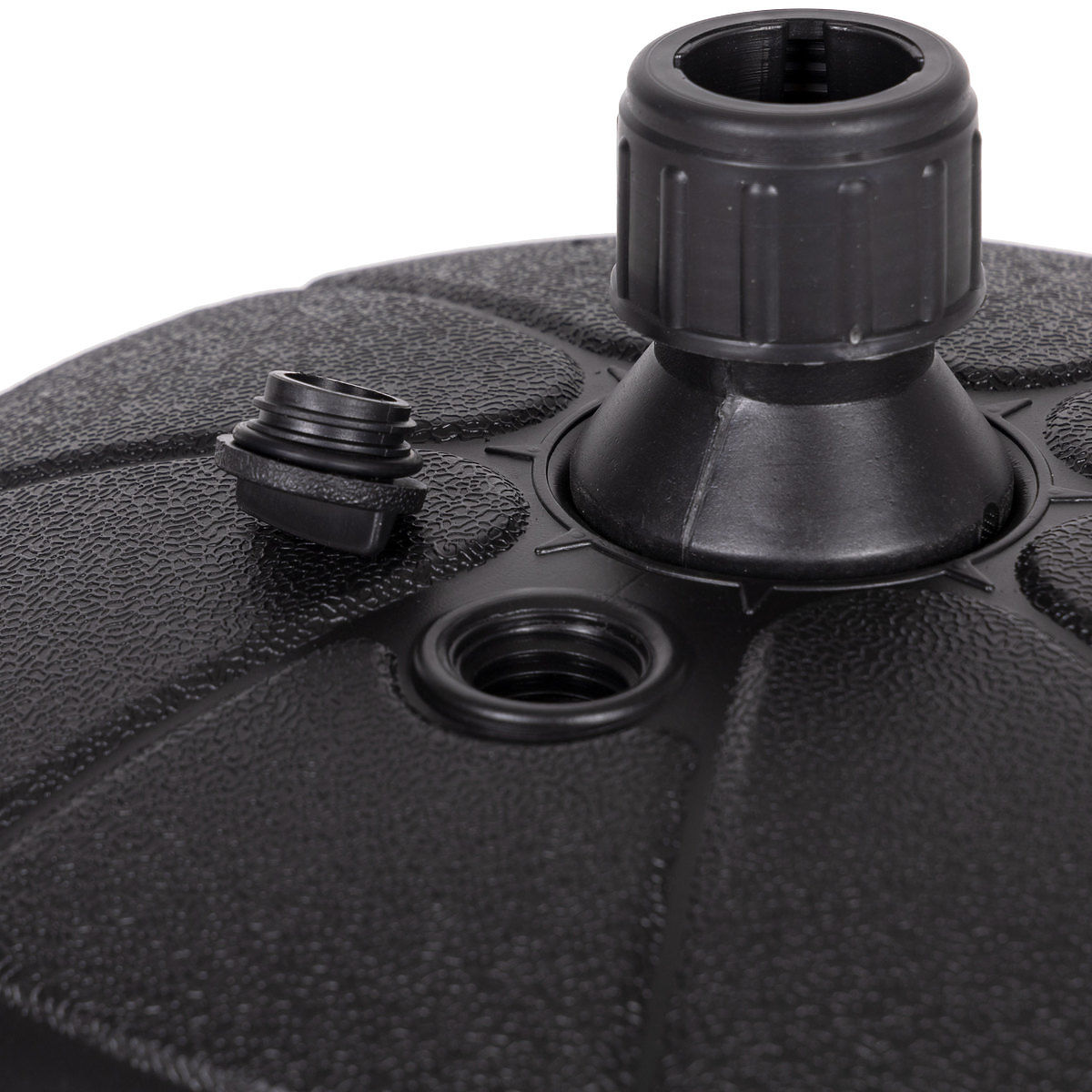 Există un dop detașabil în partea superioară a bazei, după ce îl deșurubați, umpleți baza cu apă. Un cartus umplut cu apa cantareste aproximativ 13 kg, ceea ce asigura o sarcina de stabilizare ideala pentru umbrela.