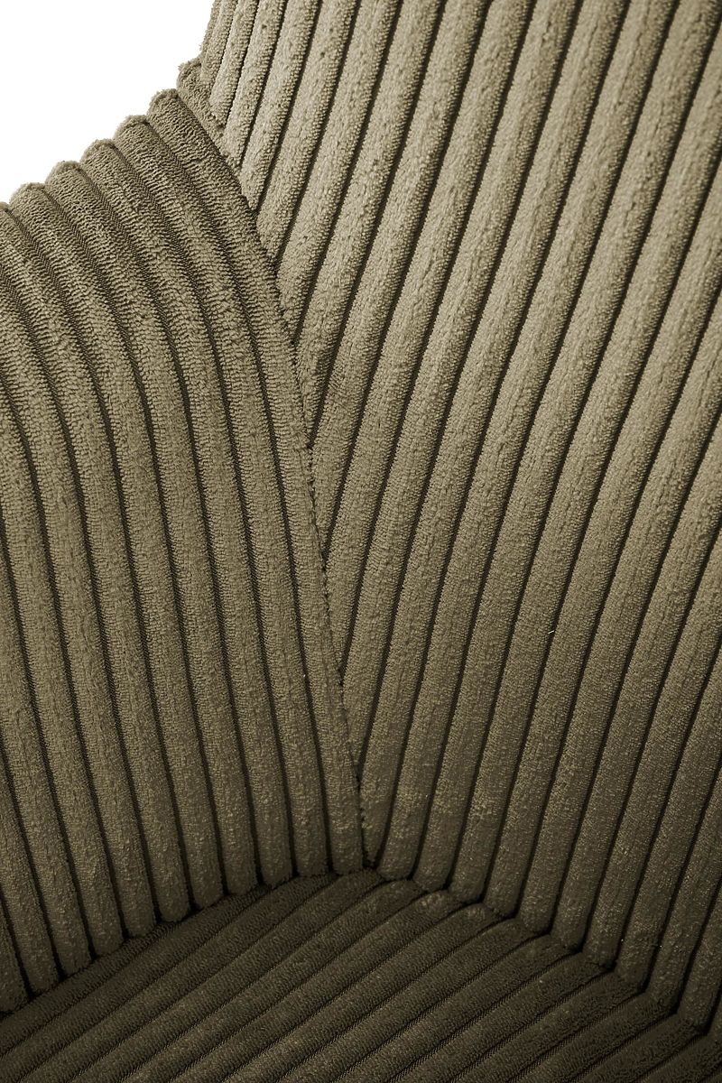 Corduroy în culoarea măslinei conferă fotoliului un aspect moale și sofisticat. Această țesătură nu este doar plăcută la atingere, ci și durabilă și ușor de întreținut, asigurând o viață lungă pentru scaunul dumneavoastră.