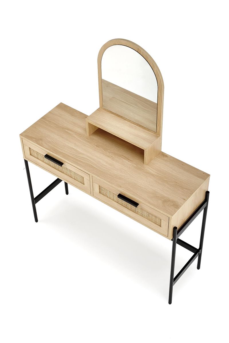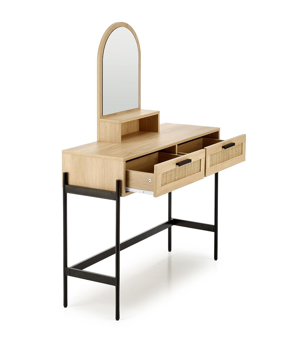 Masa este echipată cu două sertare care se închid și o oglindă practică, care vă permite să vă efectuați confortabil îngrijirea și machiajul cosmetic. Această masă din ratan va crea spațiul perfect pentru îngrijirea personală a frumuseții.