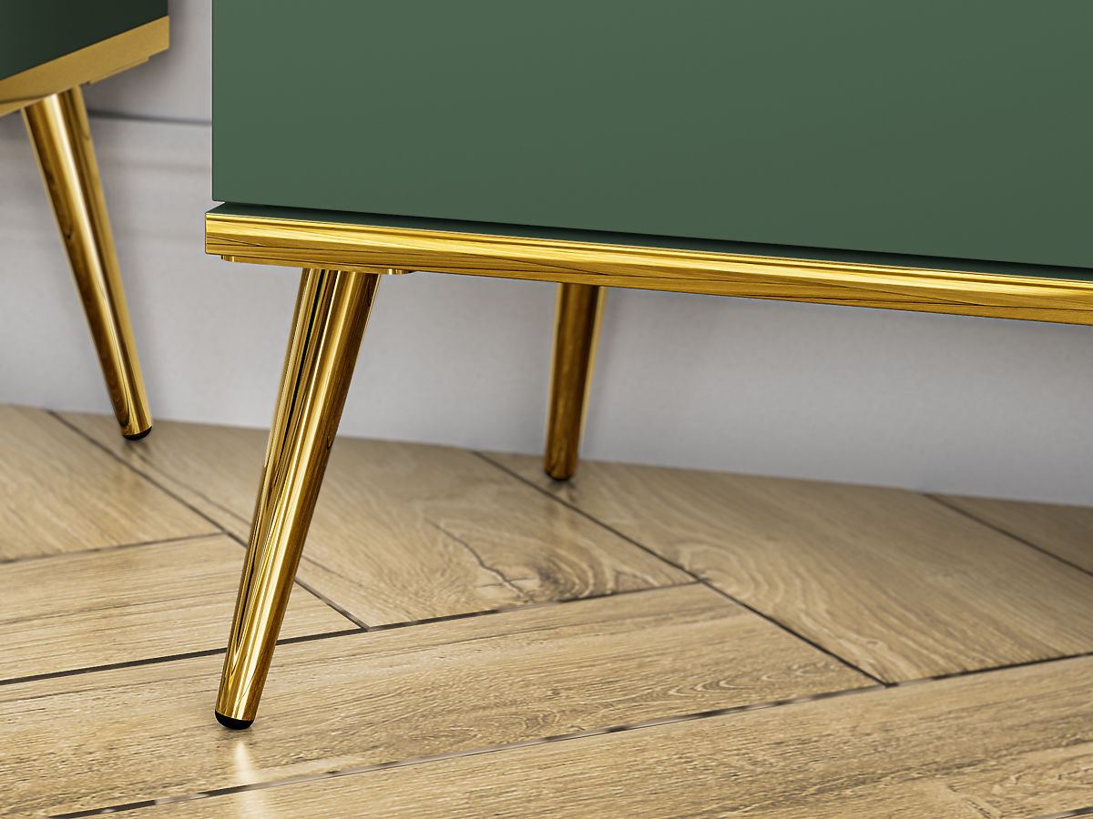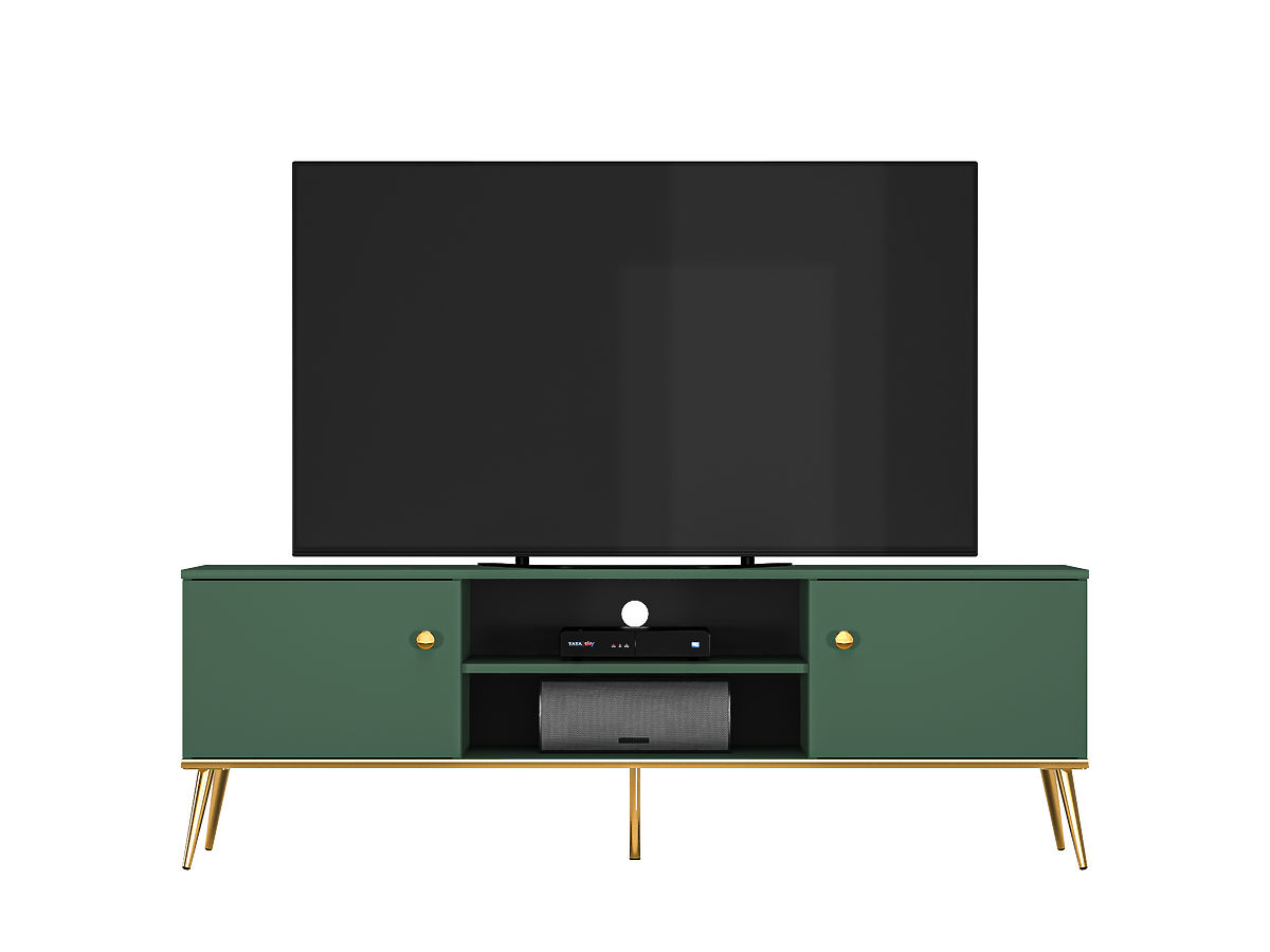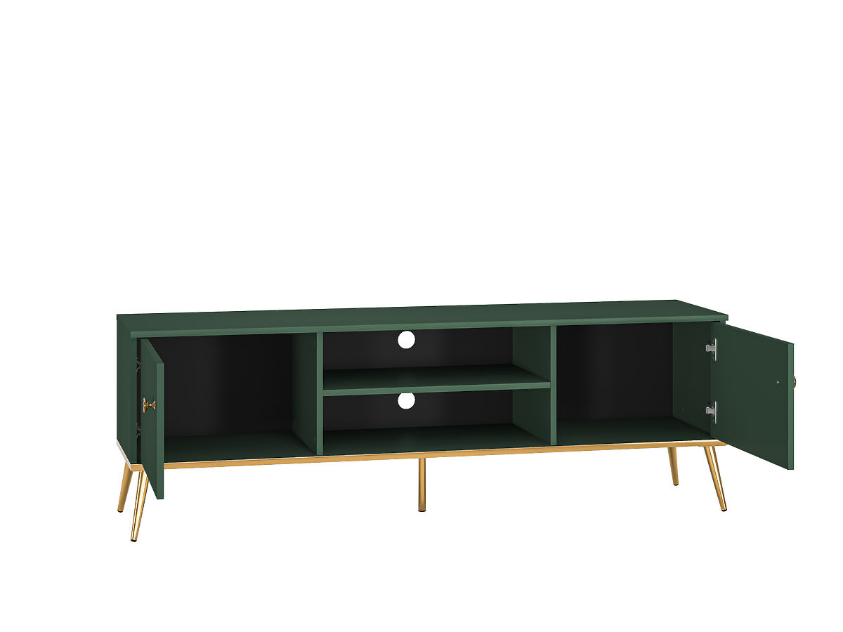 Frumosul suport TV Forest nu este doar o piesă de mobilier impresionantă din punct de vedere estetic, ci și foarte practic. Datorită spațiului mare de depozitare, oferă suficient spațiu pentru diverse dispozitive electronice, cărți sau alte lucruri. Designul unic și combinația de culori de verde închis și auriu vor aduce eleganță, pace și armonie casei tale. Se potrivește perfect într-un interior modern, precum și într-un stil retro.