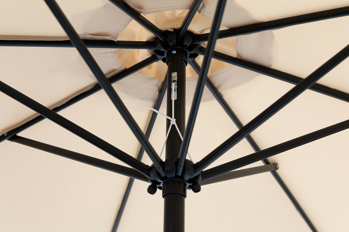 Un alt avantaj al umbrelei este posibilitatea de a înclina parasolarul. Această soluție oferă cea mai bună protecție împotriva razelor solare atunci când soarele nu este sus pe cer. Totul datorită sistemului "TILT", prin care puteți ajusta parasolarul umbrelei sub un unghi și obține o suprafață mai mare de umbră.