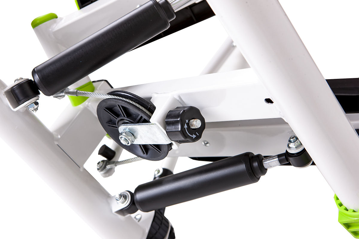 Tehnologie patentată, datorită căreia stepperul funcționează pe două planuri simultan: sus-jos și în afară-înăuntru. Mișcările laterale-twist întăresc mușchii interiori și exteriori ai coapselor și mușchii abdominali. În mișcarea verticală, antrenezi mușchii fesieri.