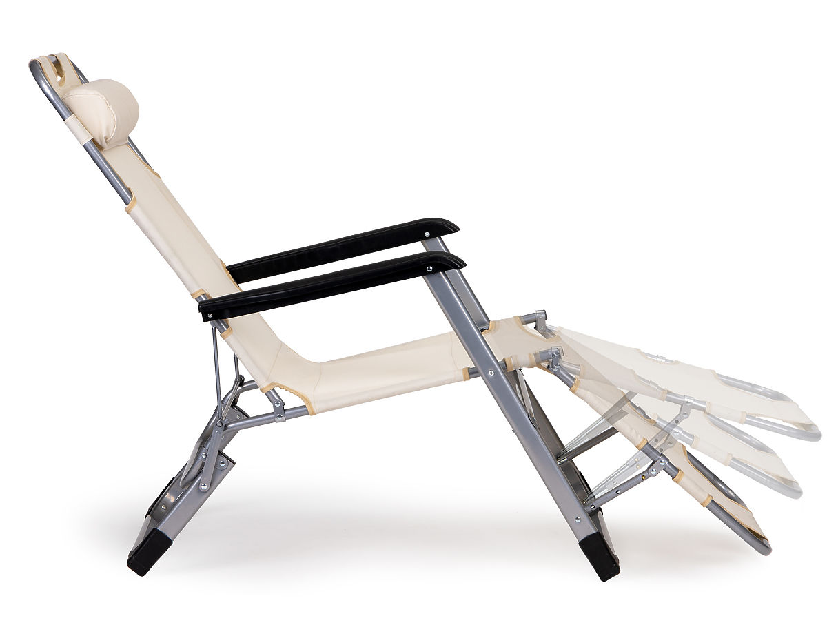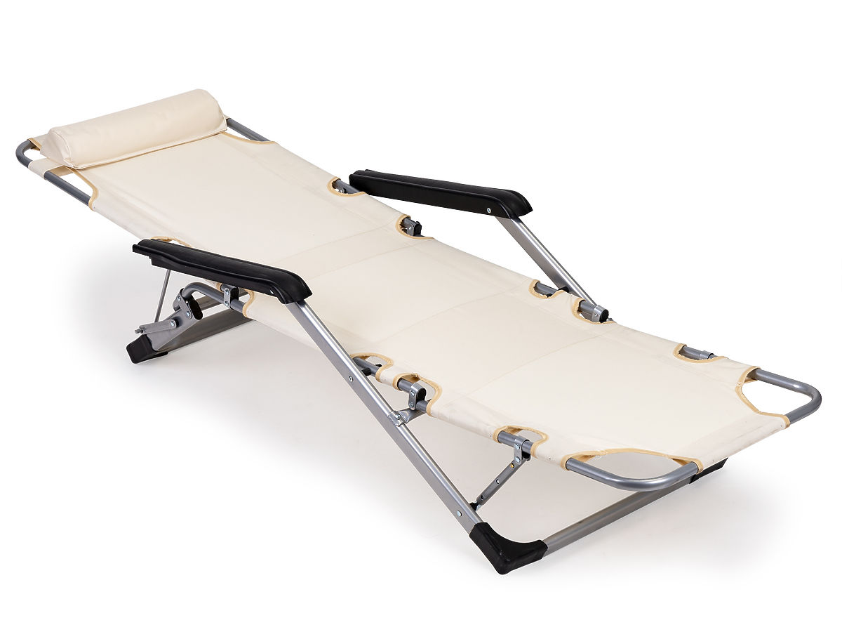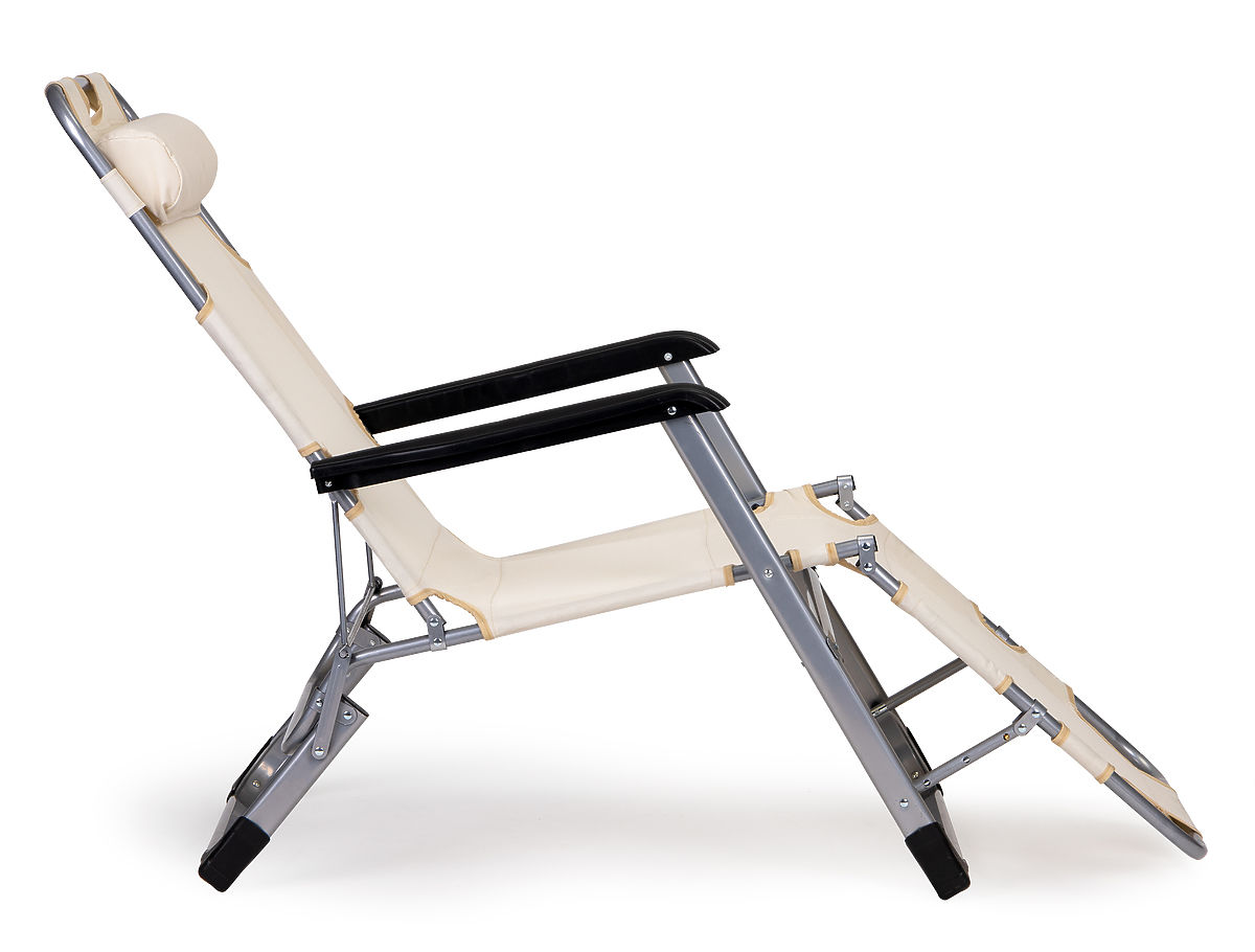 Șezlongul poate fi pliat într-un scaun, datorită construcției ingenioase, transformarea într-un șezlong confortabil, ideal pentru relaxare în aer liber, durează doar câteva momente.