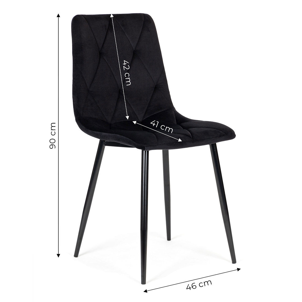 Scaunele se vor potrivi perfect cu masa de familie din sufrageria, livingul sau bucătăria dumneavoastră. Husele negre sunt realizate din catifea plăcută și durabilă, iar forma lor simplă asigură că se potrivesc perfect în spațiul livingului, sufrageriei, dar și al biroului sau restaurantului. Designul modern și combinația estetică de catifea și metal formează un set pentru cei mai exigenți utilizatori.