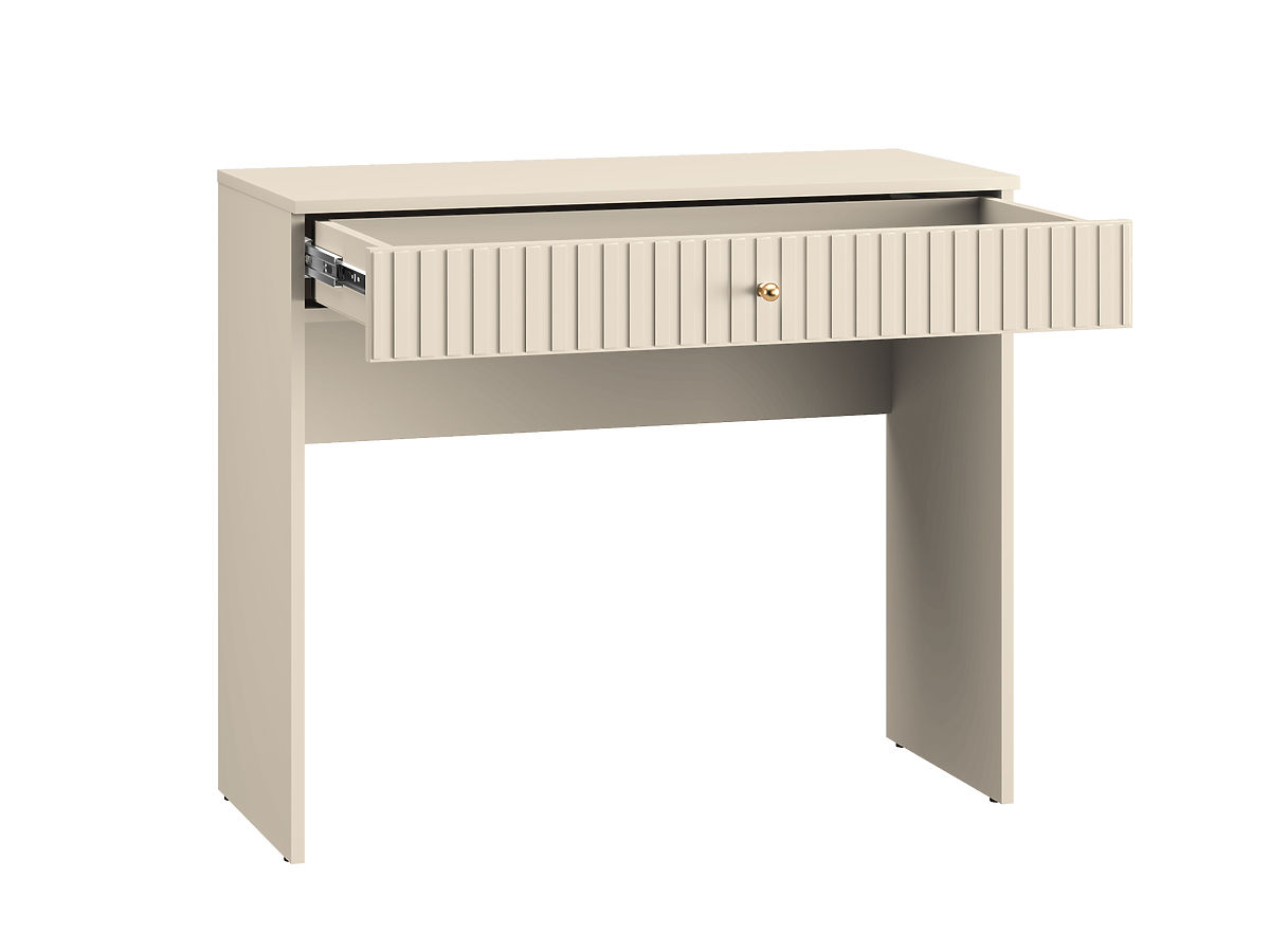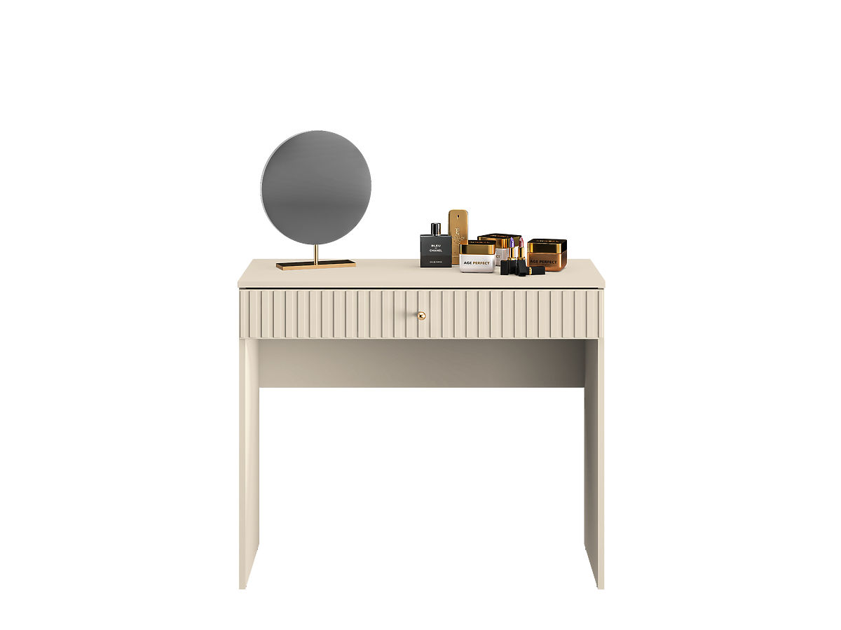 Mobila interiorul dupa dorintele tale cu toaleta eleganta Sophie intr-o culoare bej neutra si placuta. Un element interesant al mobilierului este un sertar frezat modern și mânere elegante de culoare aurie. Această piesă de design are suficient spațiu de depozitare pentru depozitarea produselor cosmetice, bijuterii și alte elemente esențiale pentru îngrijirea zilnică. Cu măsuța de toaletă Sophie, obții nu doar o piesă de mobilier practică, ci și un plus elegant și armonios pentru dormitorul tău.