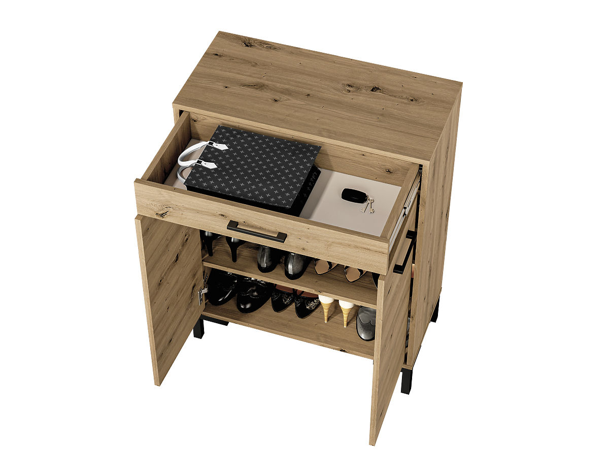 Dulapul de pantofi Nevio este soluția ideală pentru depozitarea pantofilor cu eleganță și stil. Decorul din stejar confera dulapului un aspect natural placut .. mai mult