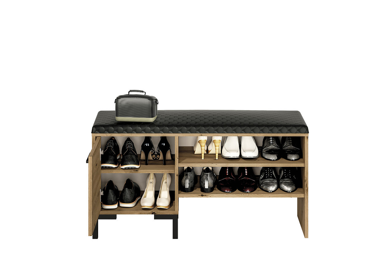 Suportul pentru pantofi Nevio se potrivește perfect în orice hol. Această piesă elegantă combină eleganța, caracterul practic și confortul. Decorul din stejar confera cutiei de pantofi un aspect natural placut care se incadreaza perfect in diverse tipuri de interioare. Scaunul matlasat cu bun gust iti ofera cel mai inalt confort posibil in timpul incaltarii si descaltarii. O mulțime de spațiu de depozitare vă permite să vă organizați pantofii și să vă păstrați intrarea curată și ordonată.