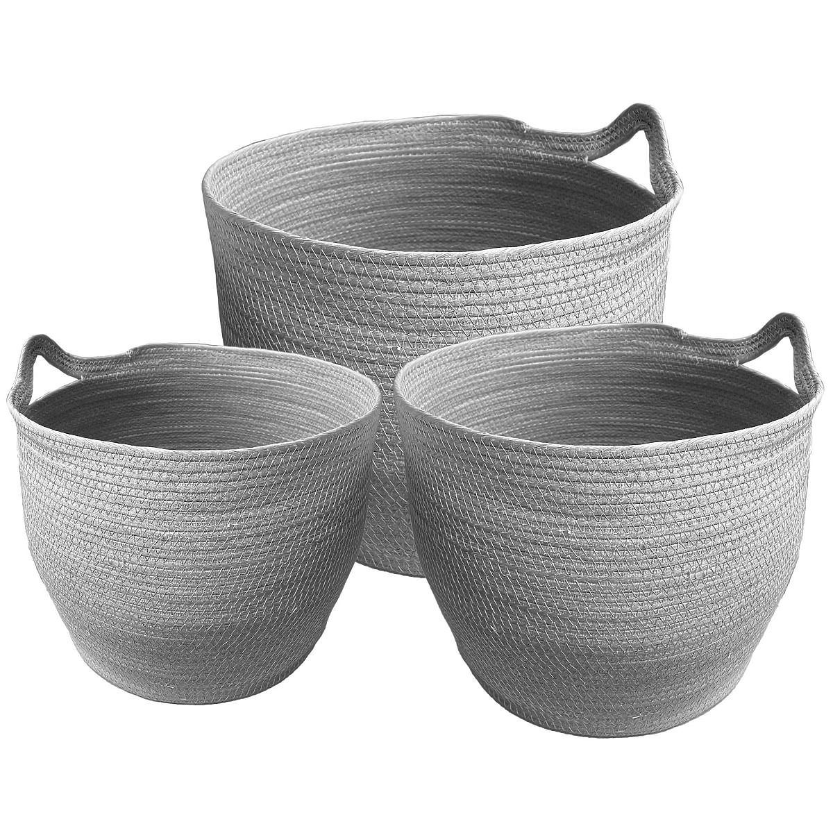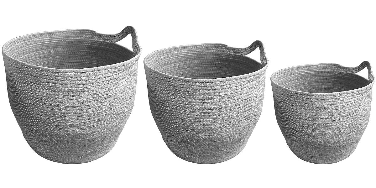 Set de coșuri gri BOHO, împletite manual, ușoare și aerisite. .. mai mult