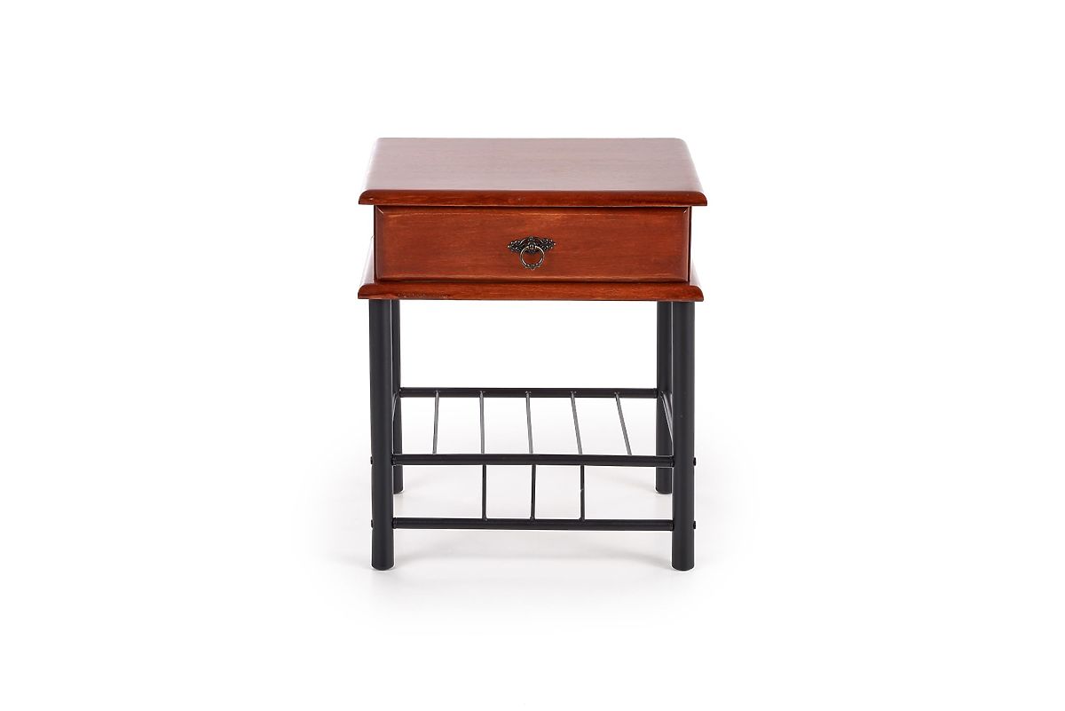 Noptieră vintage din lemn masiv și oțel vopsit, cu finisaj cireș antic și aspect industrial. .. mai mult