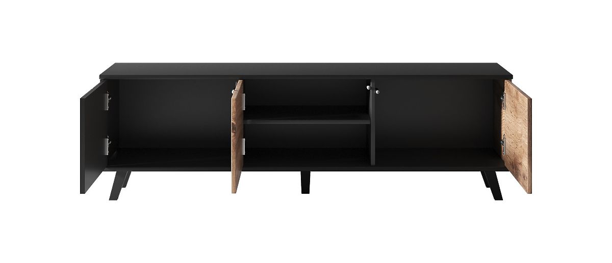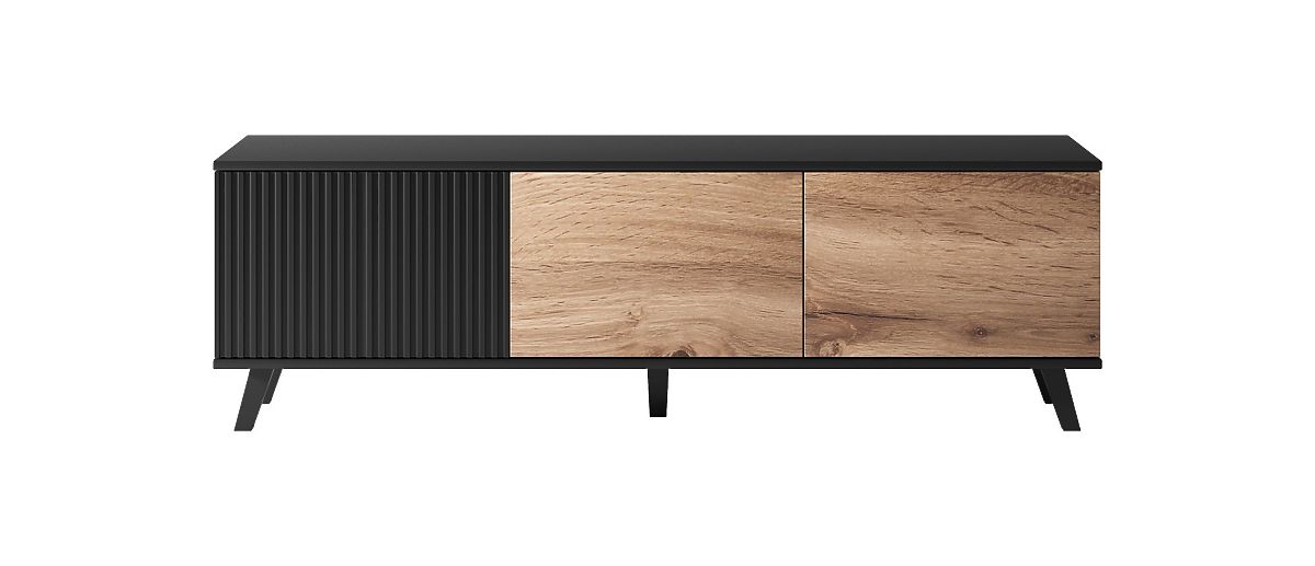 Comodă TV modernă și elegantă din stejar wotan și negru. .. mai mult