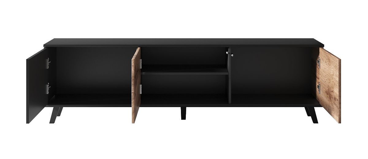 Culoare: Combinația de stejar wotan și negru conferă comodei un aspect modern și sofisticat, care se integrează ușor în orice interior.