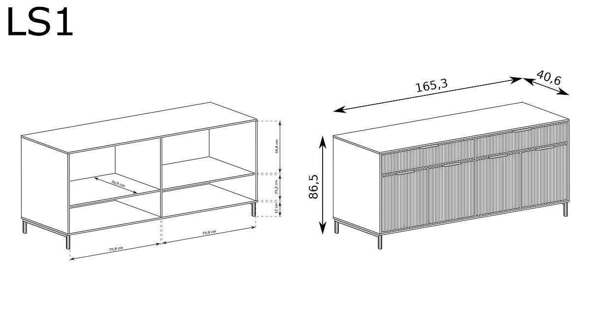 Comodă LS1 cu finisaj cașmir și picioare metalice negre. .. mai mult