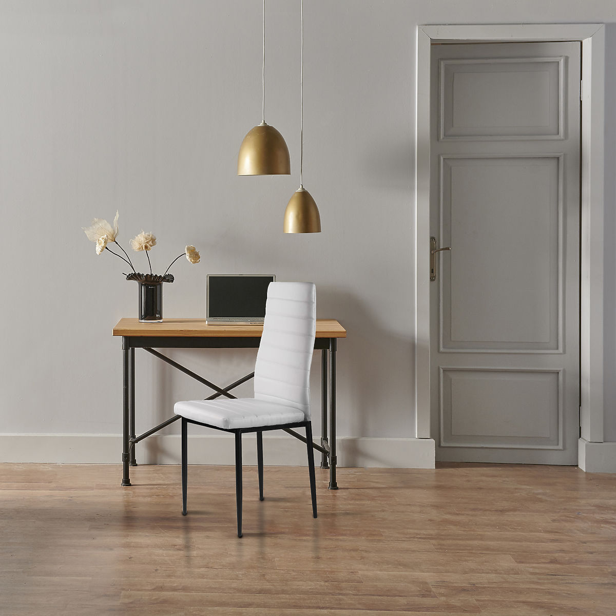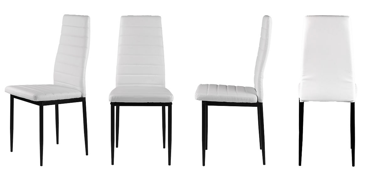 Scaunele se vor potrivi perfect cu masa de familie din sala de mese și bucătărie. Tapițeria albă realizată din piele ecologică moale și picioarele simple, negre, formează o combinație interesantă, care va face ca scaunele să arate minunat și să se integreze în orice tip de interior, adăugându-i un caracter deosebit.