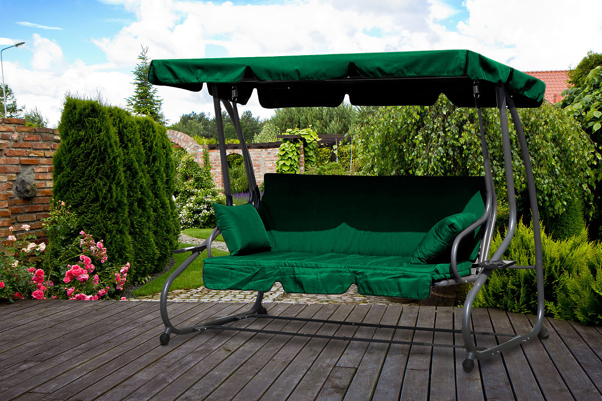 Lukahome.ro » Mobilier de grădină / Leagăne și hamace / Leagăn de grădină extensibil 2 în 1 cu perne verzi