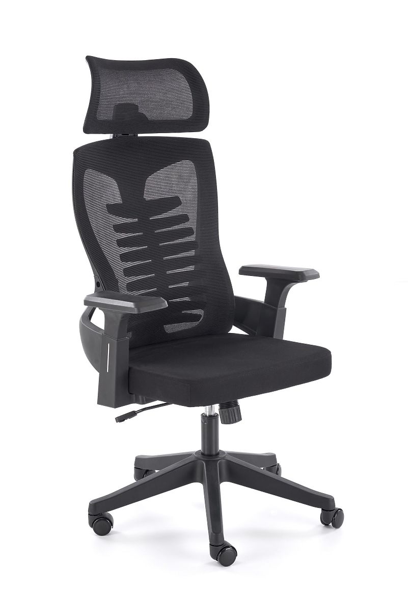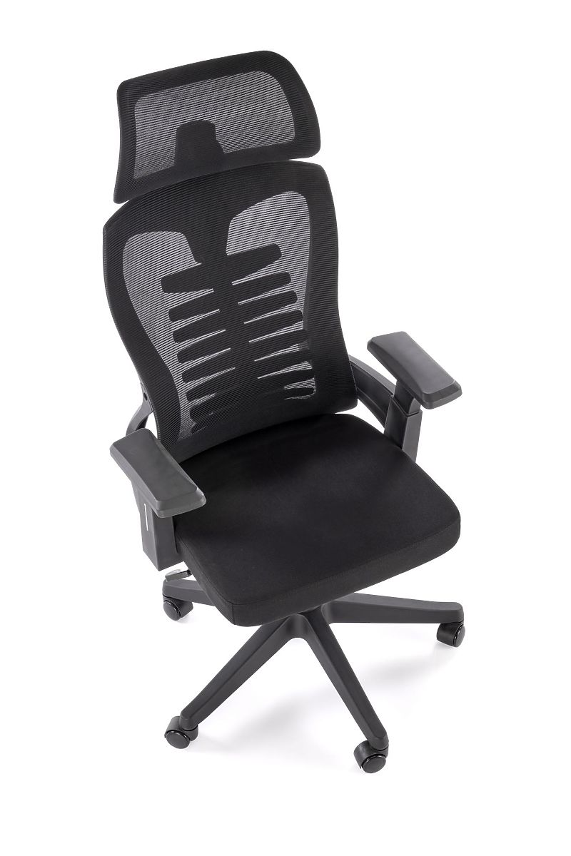 Scaun rotativ negru cu mecanism TILT și țesătură de membrană. .. mai mult