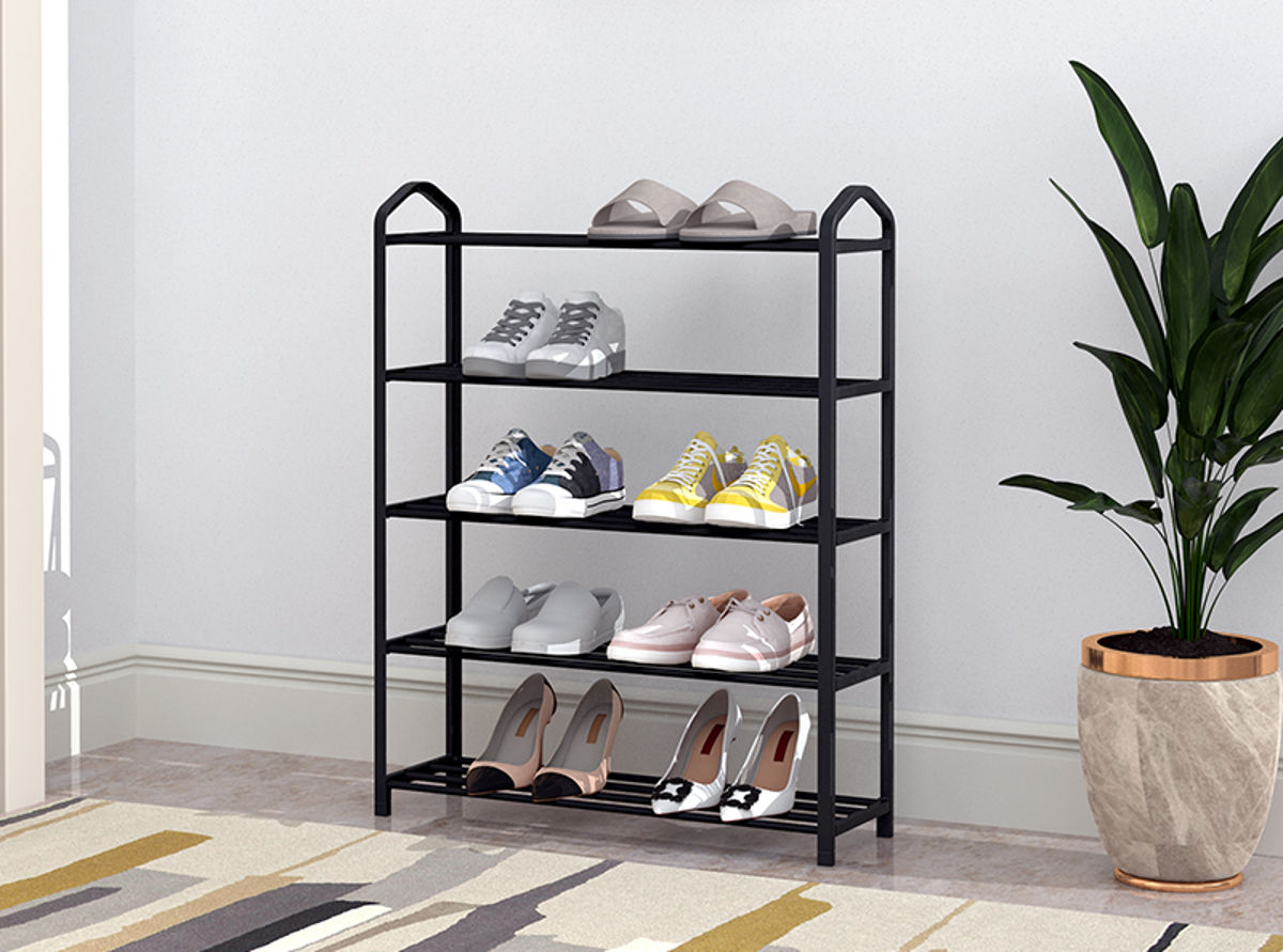 Lukahome.ro » Mobilier / Rafturi pentru pantofi / Pantofar metalic cu 5 rafturi pentru 15 perechi de pantofi, negru