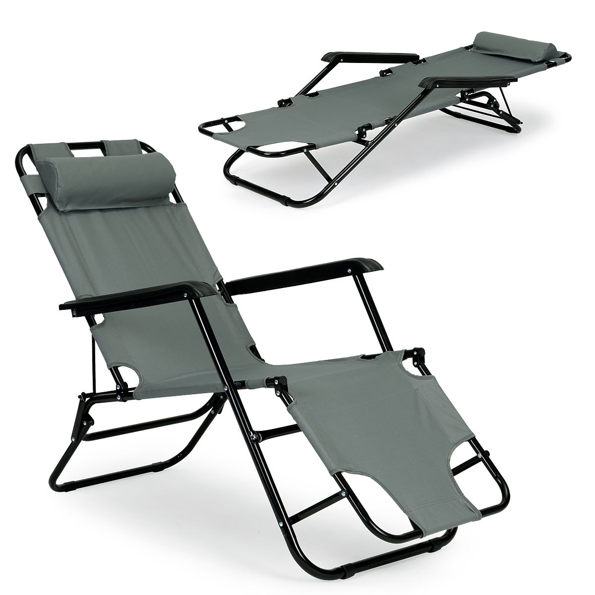 Lukahome.ro » Mobilier de grădină / Șezlonguri de grădină / Șezlong de grădină cu suport pentru cap, structură pliabilă, gri MultiGarden