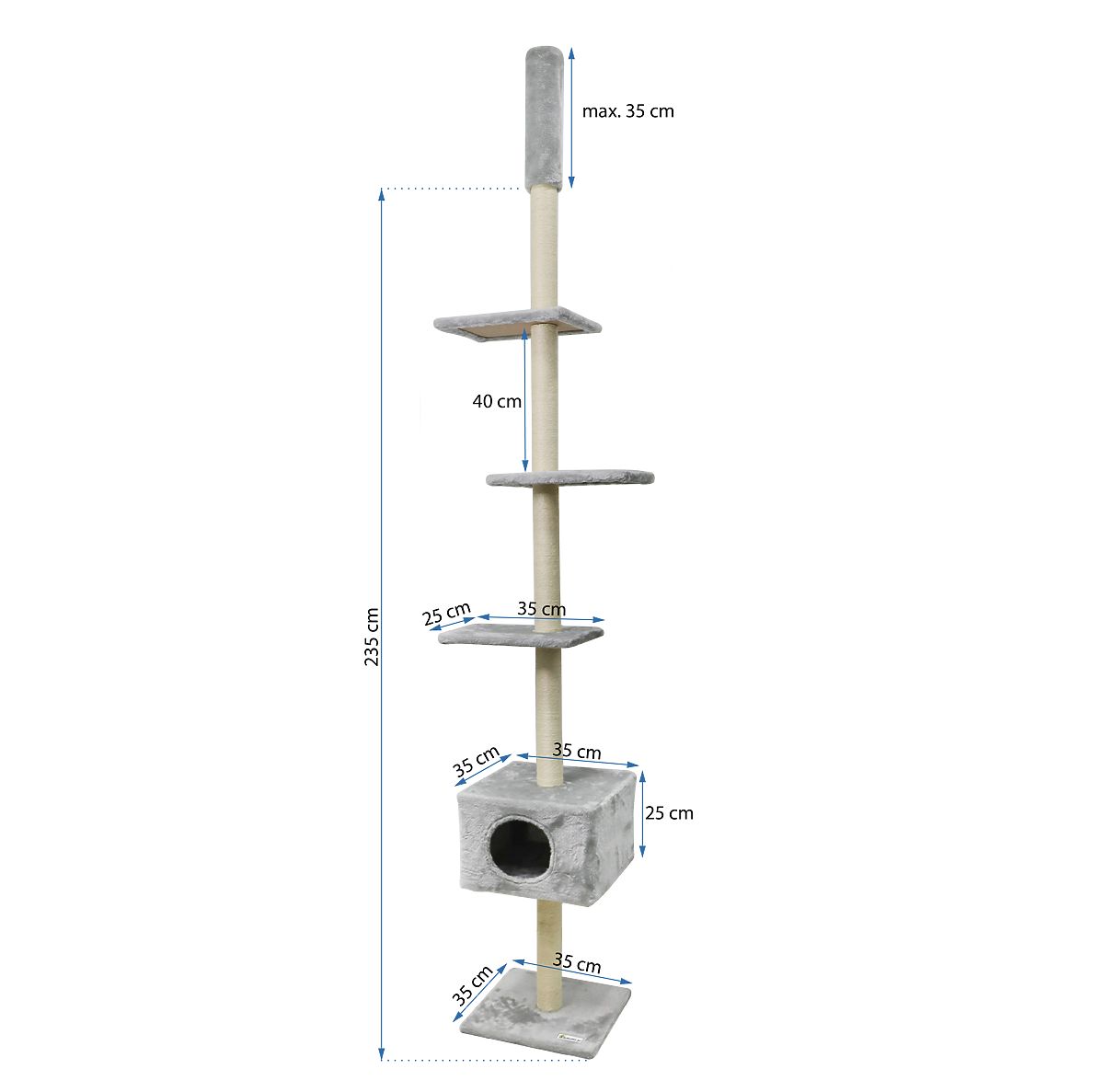 Vă prezentăm un zgârie-nor rezistent și estetic pentru pisici, în formă de cactus. Este locul ideal pentru ascuțirea ghearelor, dar servește și ca loc de joacă pentru pisica dumneavoastră. Datorită utilizării materialelor de înaltă calitate, zgârie-norul va rezista cu brio ghearelor pisicilor și va servi pentru o perioadă foarte lungă de timp. Înălțimea reglabilă a zgârie-norului, între 240-270 cm, permite adaptarea la construcția camerei.