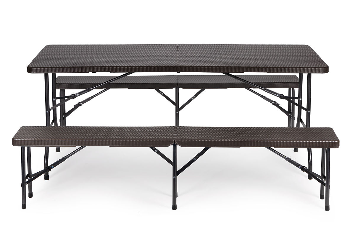 Lukahome.ro » Mobilier de grădină / Seturi de grădină / Set de catering masă de banchet 180 cm 2 bănci ratan maro ModernHome