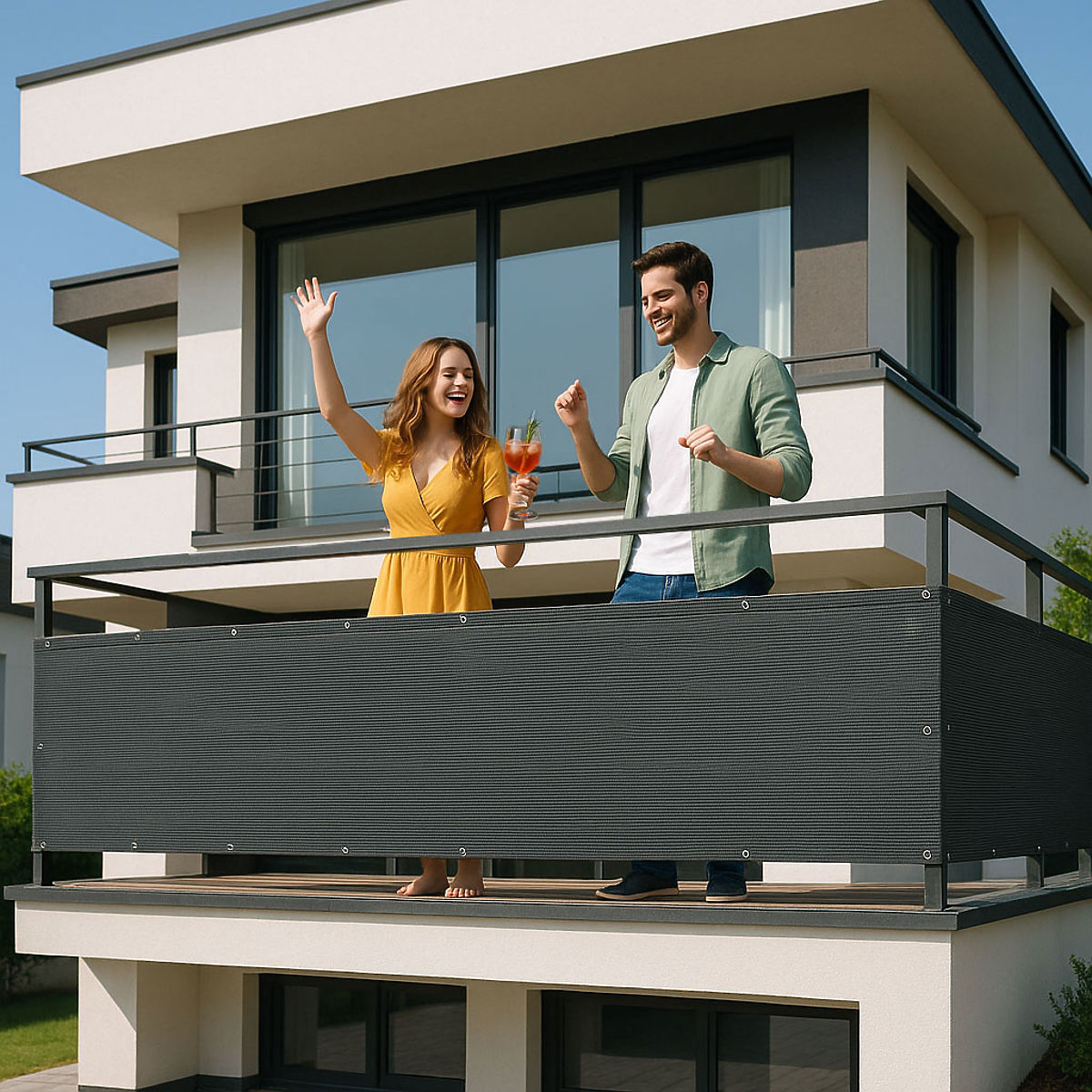 REZISTENȚĂ ȘI ELEGANȚĂ ÎNTR-UNULParavanul de balcon este fabricat din material durabil HDPE, care se remarcă prin rezistență ridicată la deteriorări mecanice și radiații UV, permițând păstrarea culorii intense chiar și în condiții de expunere îndelungată la soare. Materialul nu absoarbe umezeala, fiind astfel rezistent la mucegai, deformări și condiții meteorologice variabile. Plasa ușoară, dar rezistentă, umbrește eficient spațiul, permițând în același timp trecerea liberă a aerului.