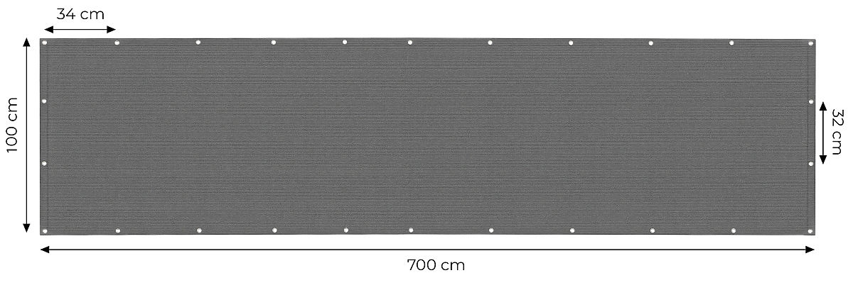 Lukahome.ro » Grădini / Umbrele și vele solare / Paravan de balcon cu feronerie 100x700 cm plasă de umbrire + elemente de instalare gri MultiGarden