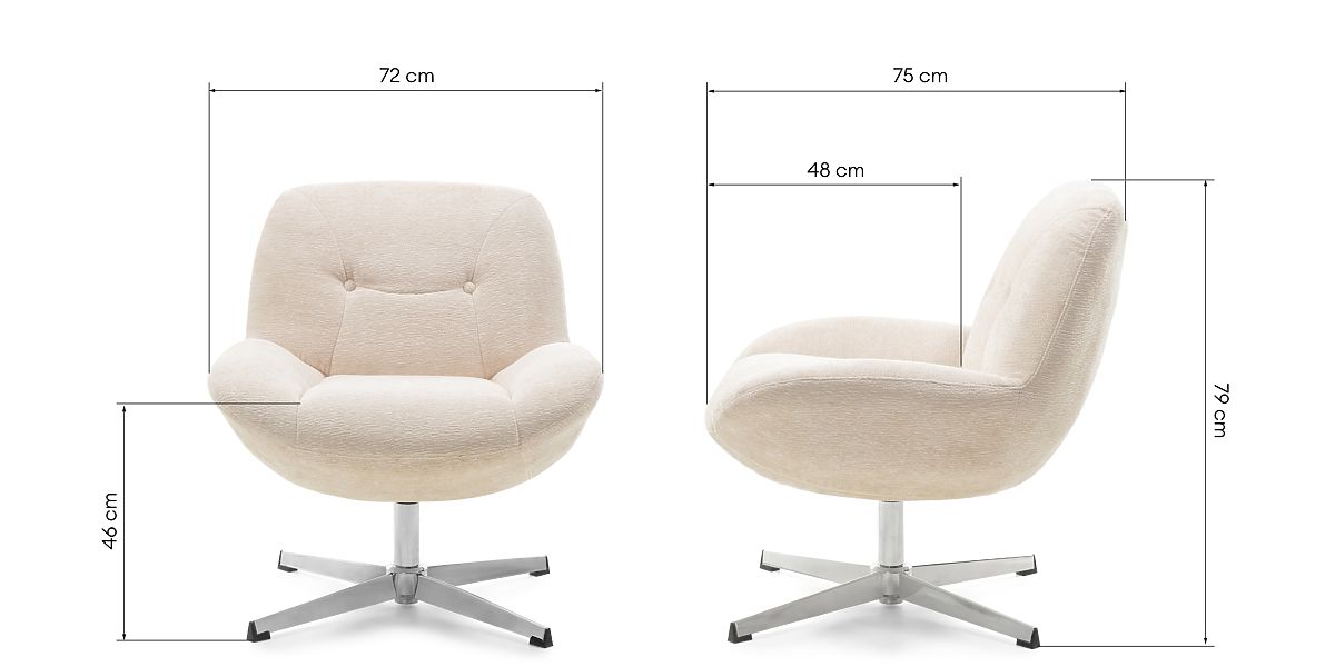Asigurați-vă confortul de neegalat cu Lunno - un fotoliu care nu doar că vă va încânta prin designul său, dar vă va garanta și o relaxare extraordinară. Tapițeria sa din material moale, bej, oferă o senzație plăcută de învăluire, iar liniile sale fine și rotunjite aduc un element de căldură în cameră. Fotoliul Lunno nu doar că impresionează prin aspect, ci și prin confortul pe care îl oferă. Scaunul său extrem de confortabil și spătarul ergonomic asigură că fiecare moment de relaxare devine o adevărată plăcere. În plus, funcția de rotire permite schimbarea liberă a poziției, oferind și mai multă flexibilitate în utilizare. Nu sună grozav? Bucurați-vă de momente de relaxare în fotoliul Lunno și faceți fiecare zi specială.
